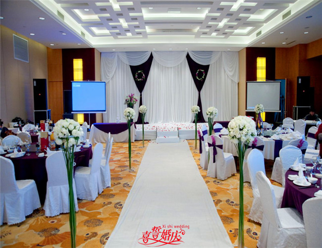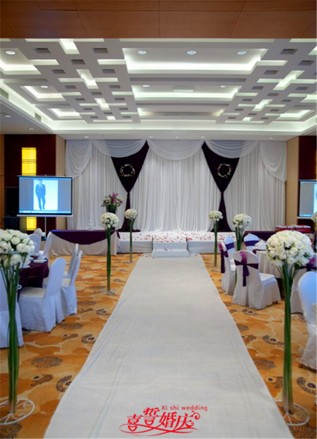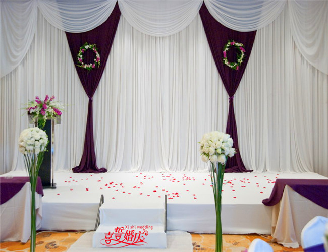 精美欧式背景布幔一套水帘装饰+wedding牌或双心+各款拉纱造型+LED灯装饰(最大尺寸4米X8米)