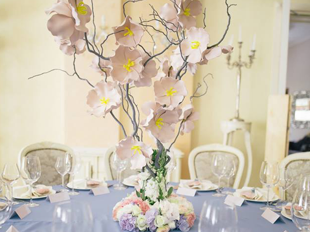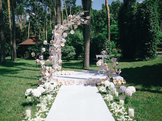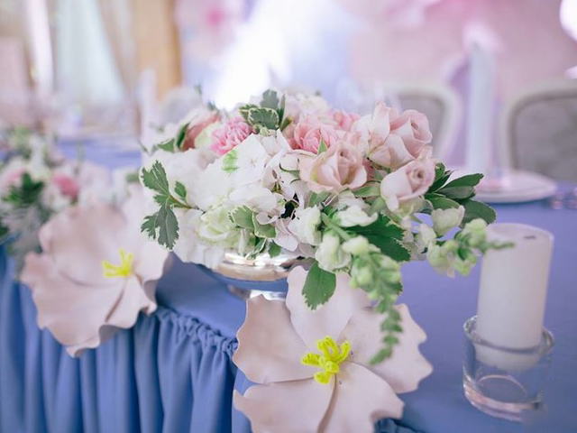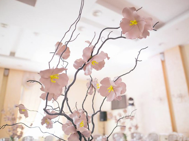 超大豪华布艺帷幔背景(复式三块背景)结合 KT 板造型/豪华布艺帷幔,高清写真喷绘,组合背景/豪华布艺背景和 KT 板造型组合背景/豪华飘顶一个,结合 KT 板造型;精美定制雪弗板花瓣装饰 1 组;设计师一对一专设计属设计 KT 板造型;豪华金色罗马盆路引和花艺装饰 8 个/花瓣龙珠灯路引 8 个(二选一);欧式时尚铁艺贵妃椅 1 套和花艺装饰;豪华浪漫高仿真樱花树 1 棵;专业钢结构 T 台 ;T 台末端方形交接仪式舞台;T 台两侧高仿真花艺花排;红地毯或主题色地毯或镜面地毯;T 台交接仪式区樱花拱门 1 座;高档水晶吊灯 2 盏;精美亚克力直筒玻璃花瓶 24个;水晶珠帘数串。