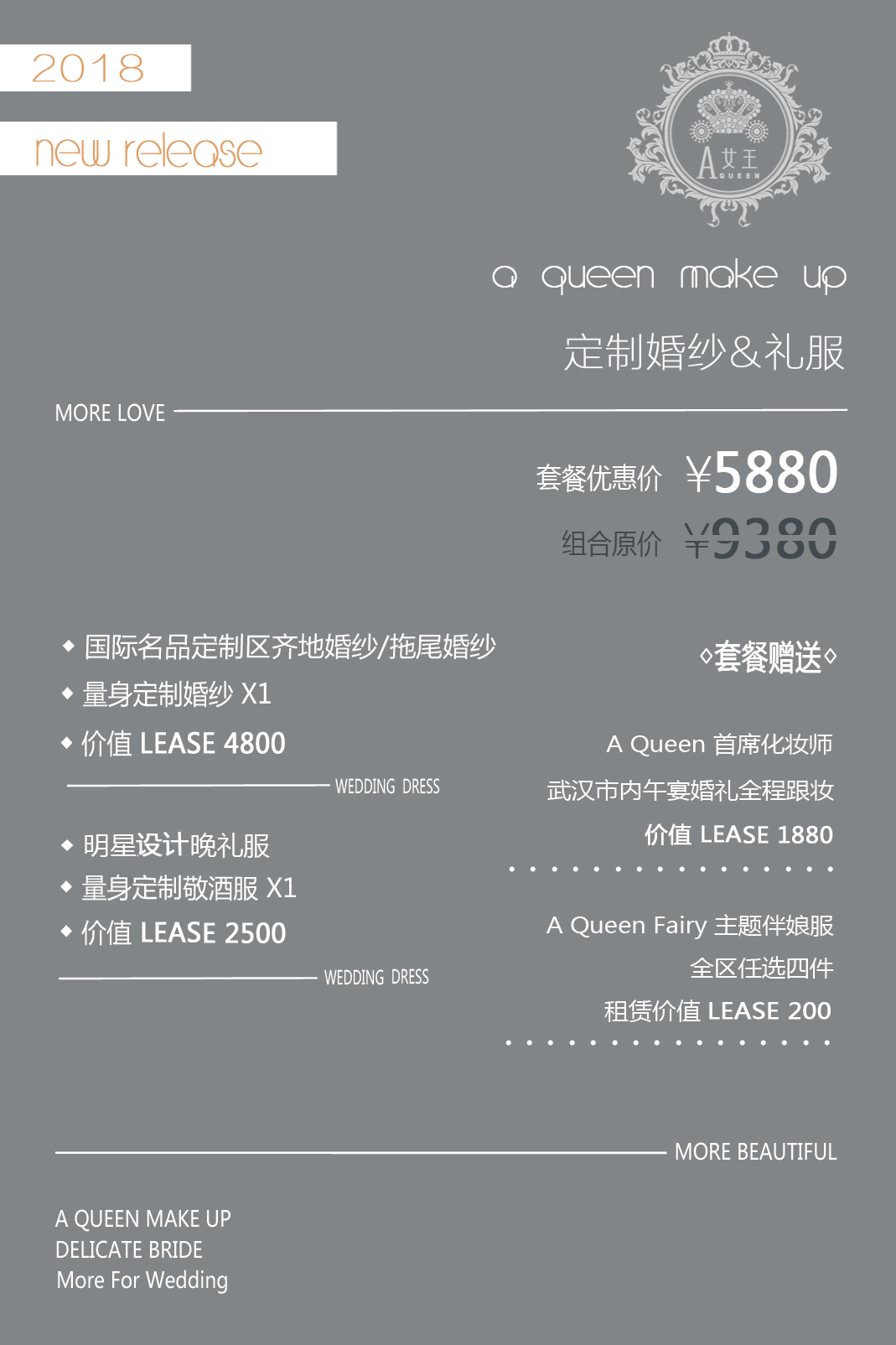『A Queen』高端定制婚纱套餐+跟妆