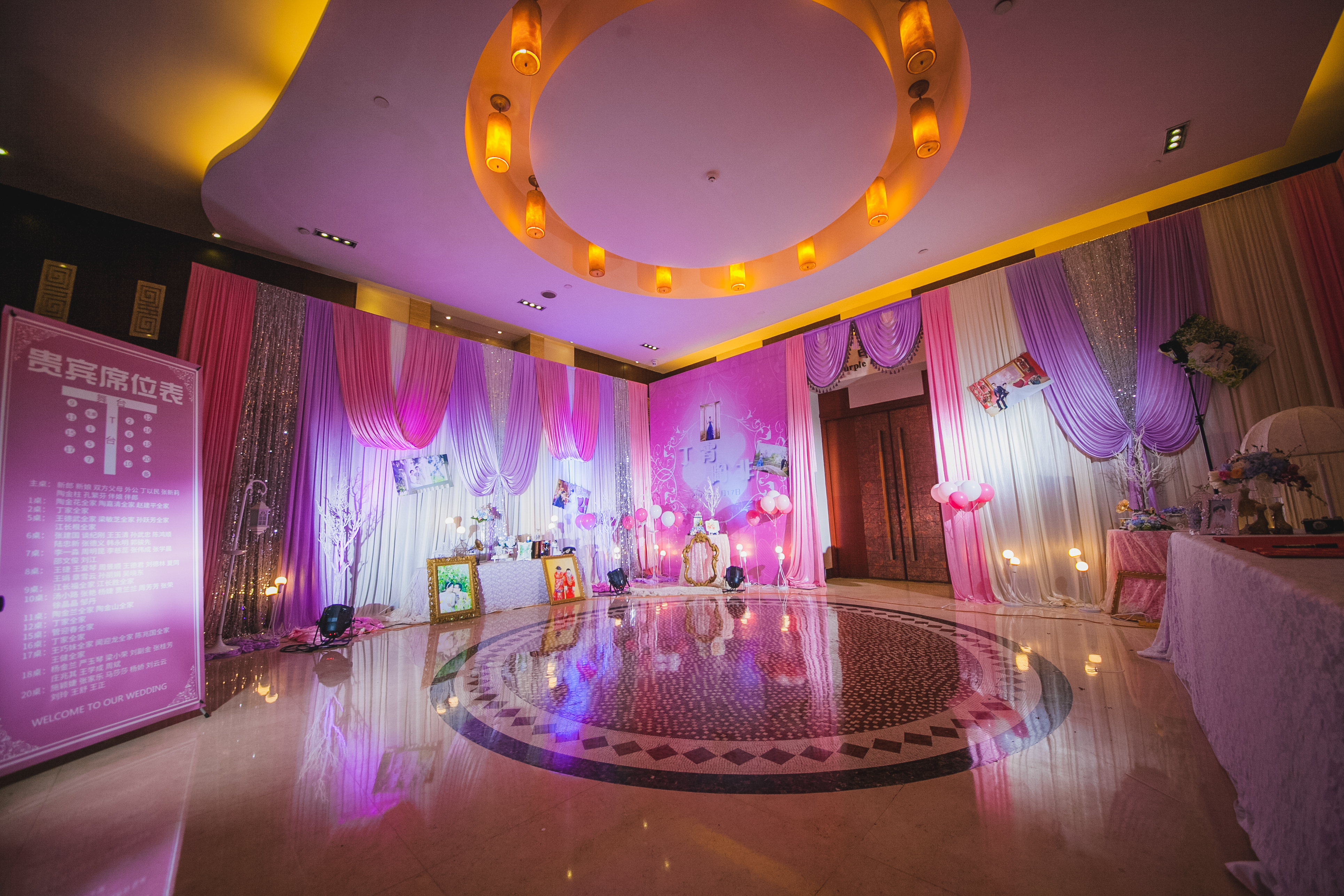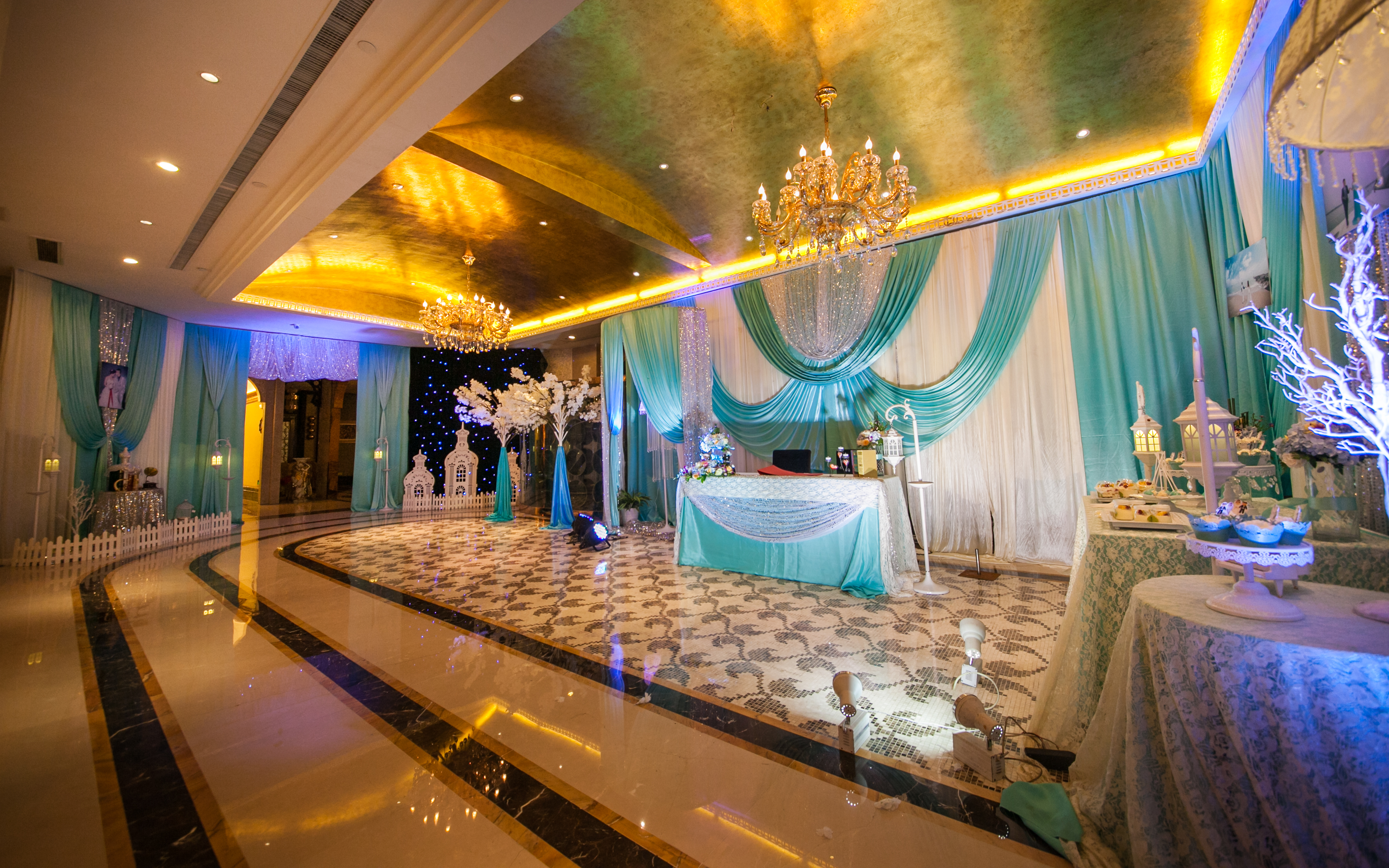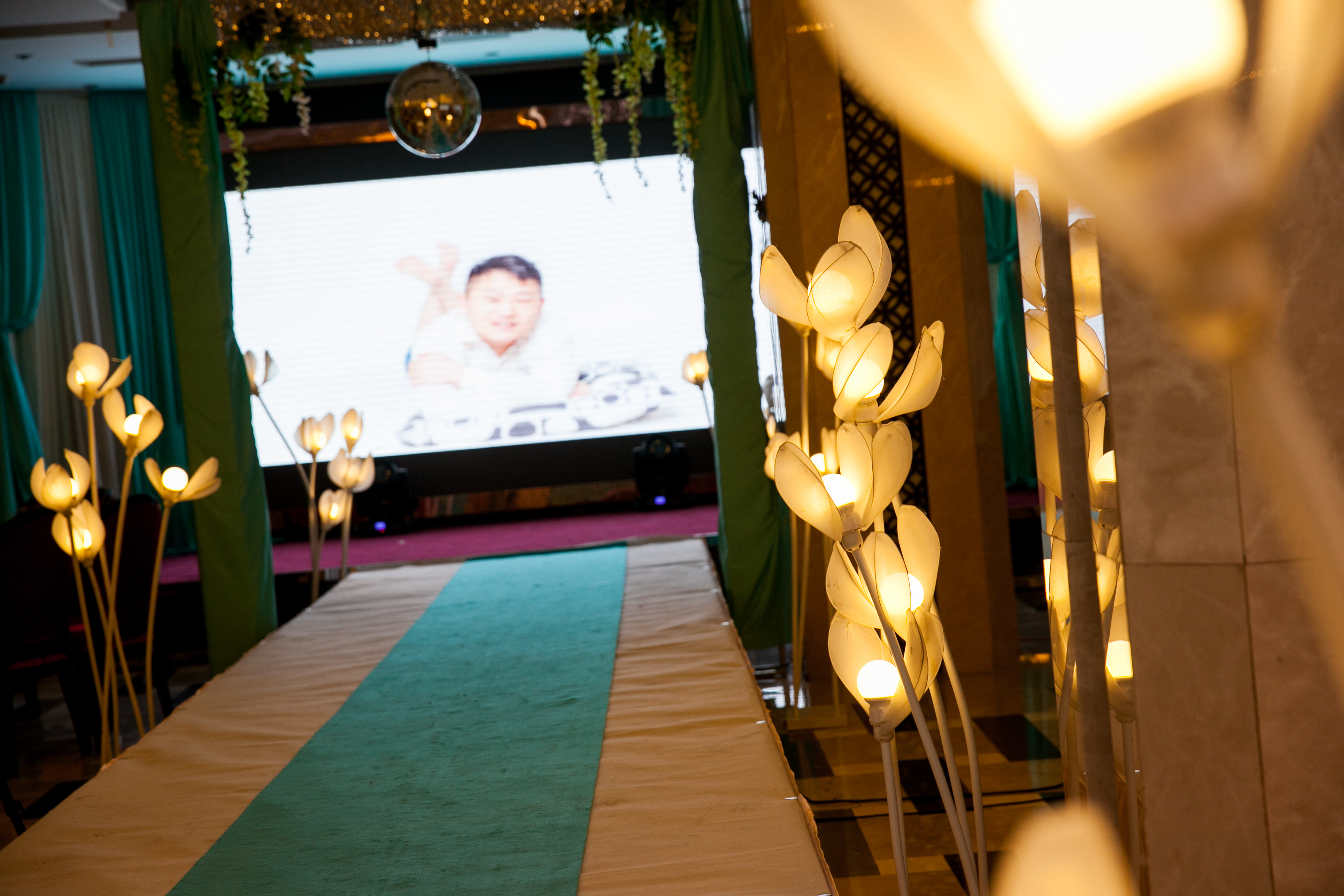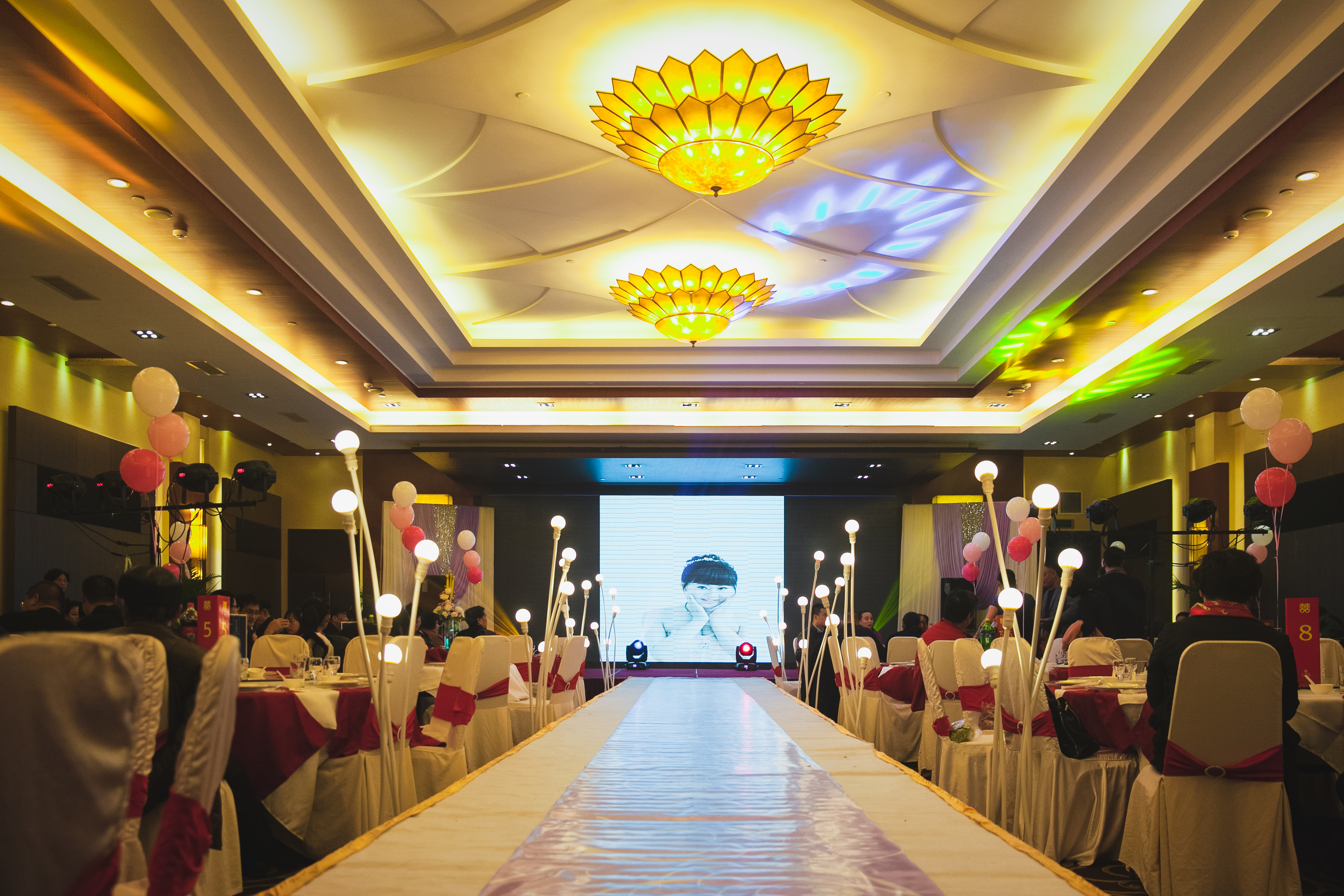 我们的T台为1.8米超宽T台,搭配符合新人主题的地毯及裙边,音响为JBL双15原装音箱及YAMAHA功放,为您婚礼的听觉达到最好的效果,此外赠送魔球一套,让您晚宴大厅如星空般浪漫,温馨