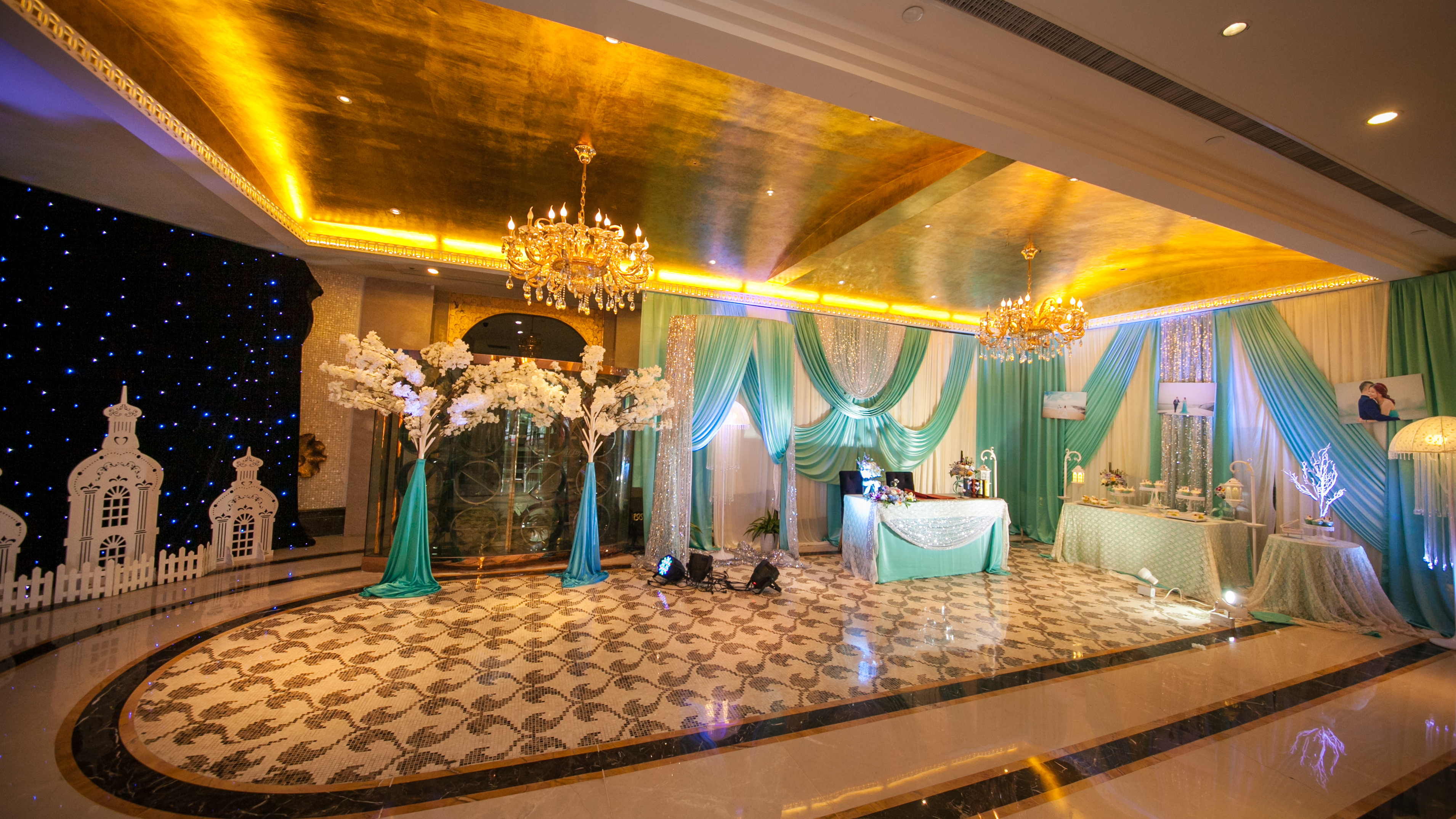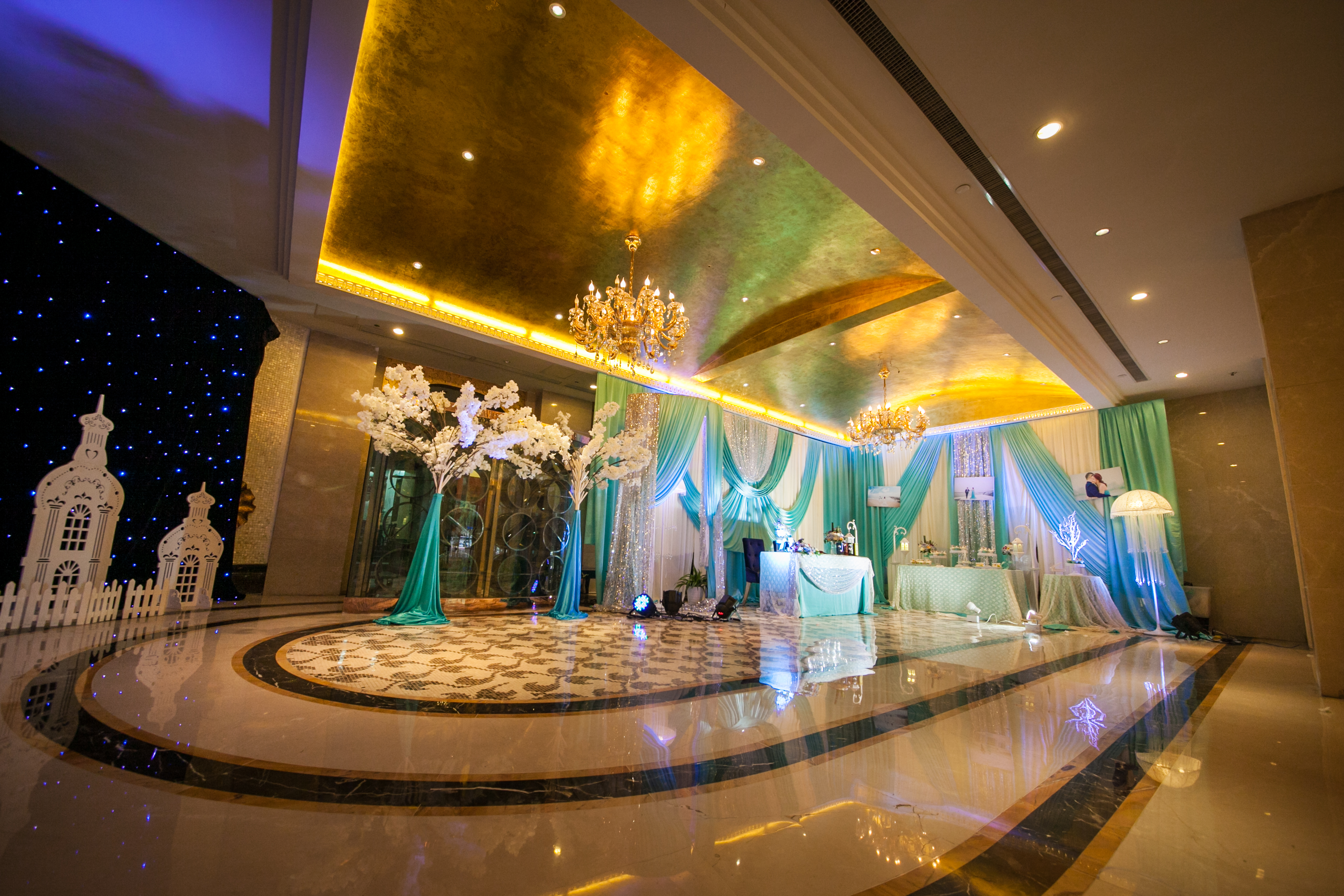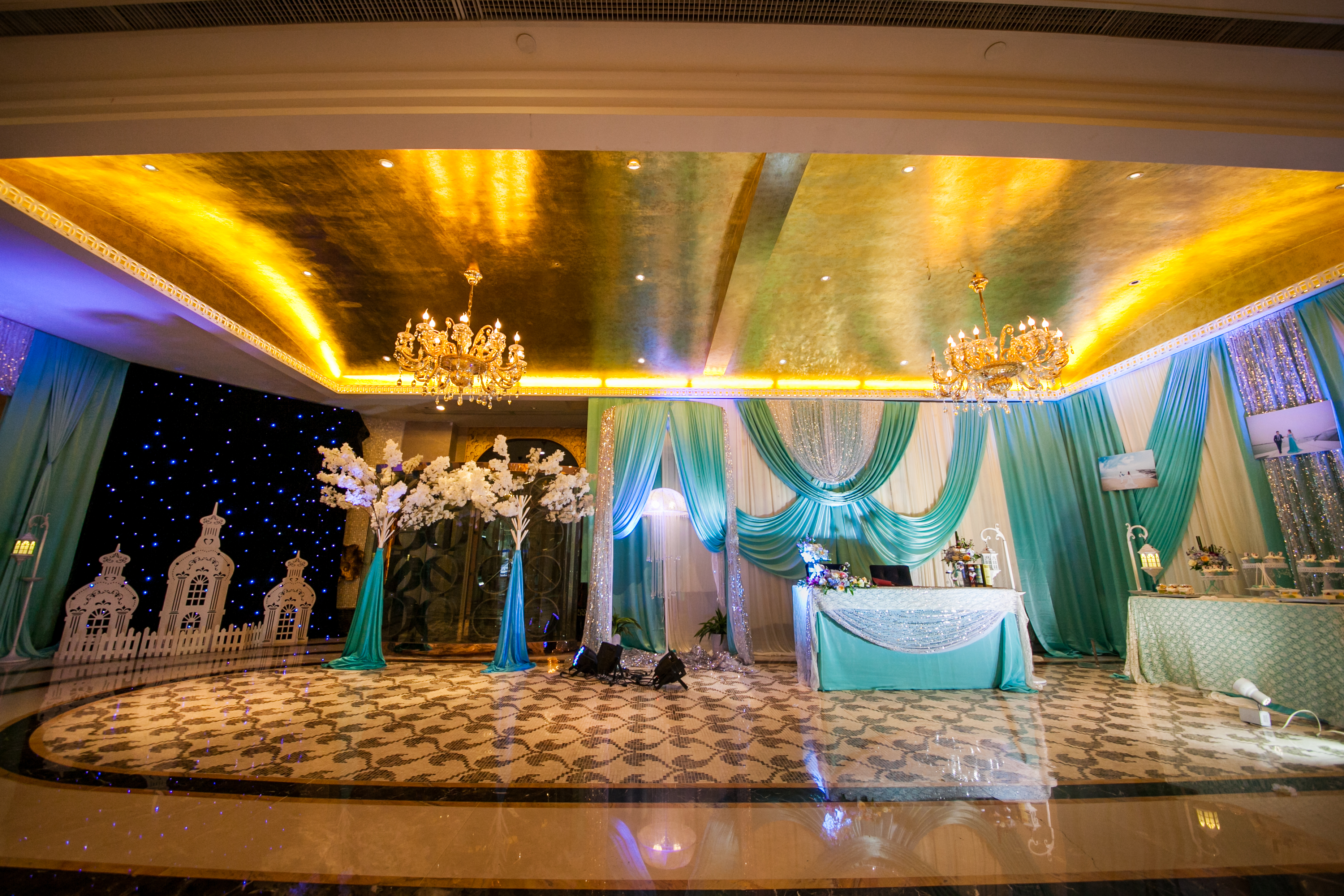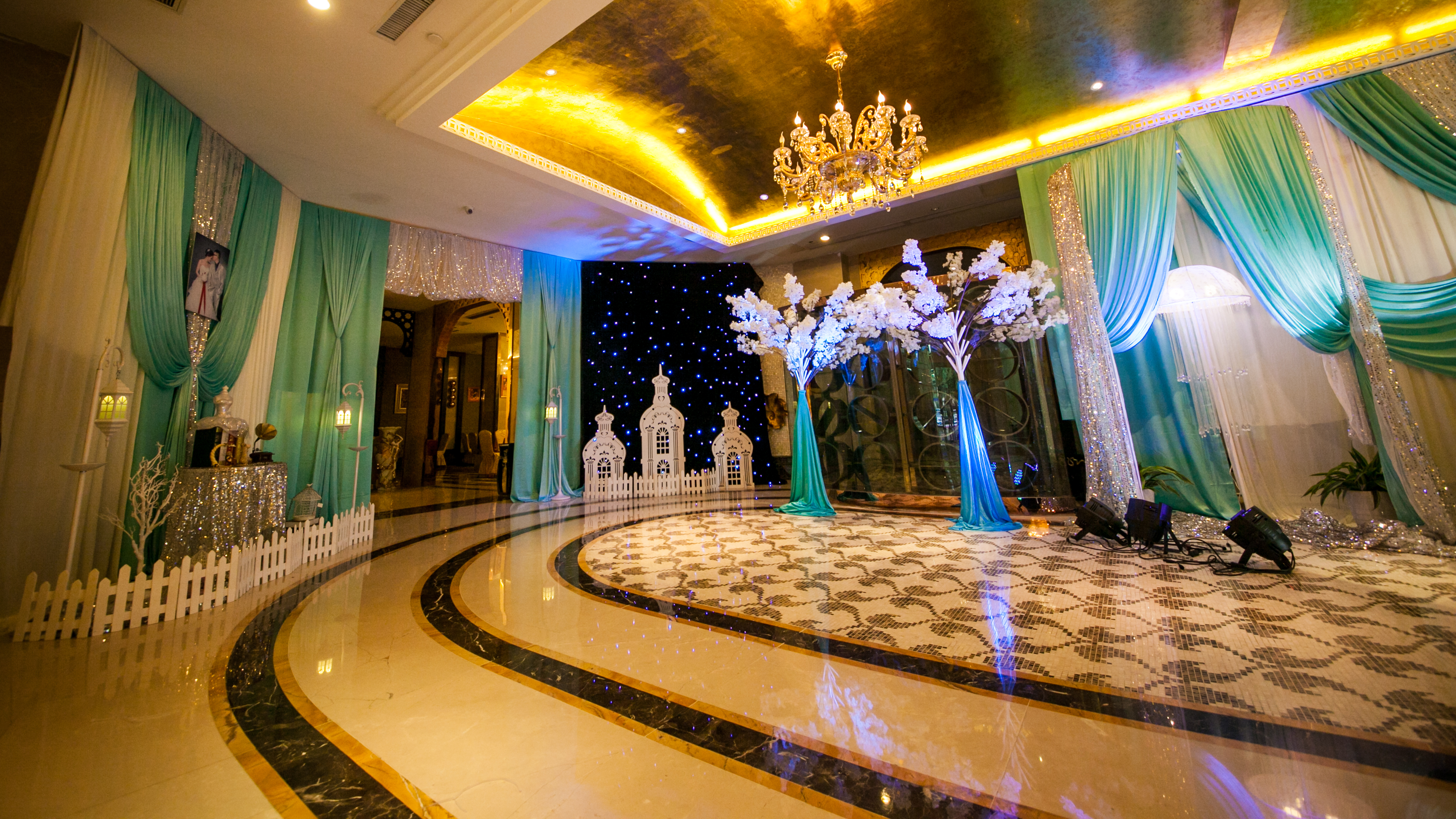 我们的T台为1.8米超宽T台,搭配符合新人主题的地毯及裙边,音响为JBL双15原装音箱及YAMAHA功放,为您婚礼的听觉达到最好的效果,此外赠送魔球一套,让您晚宴大厅如星空般浪漫,温馨