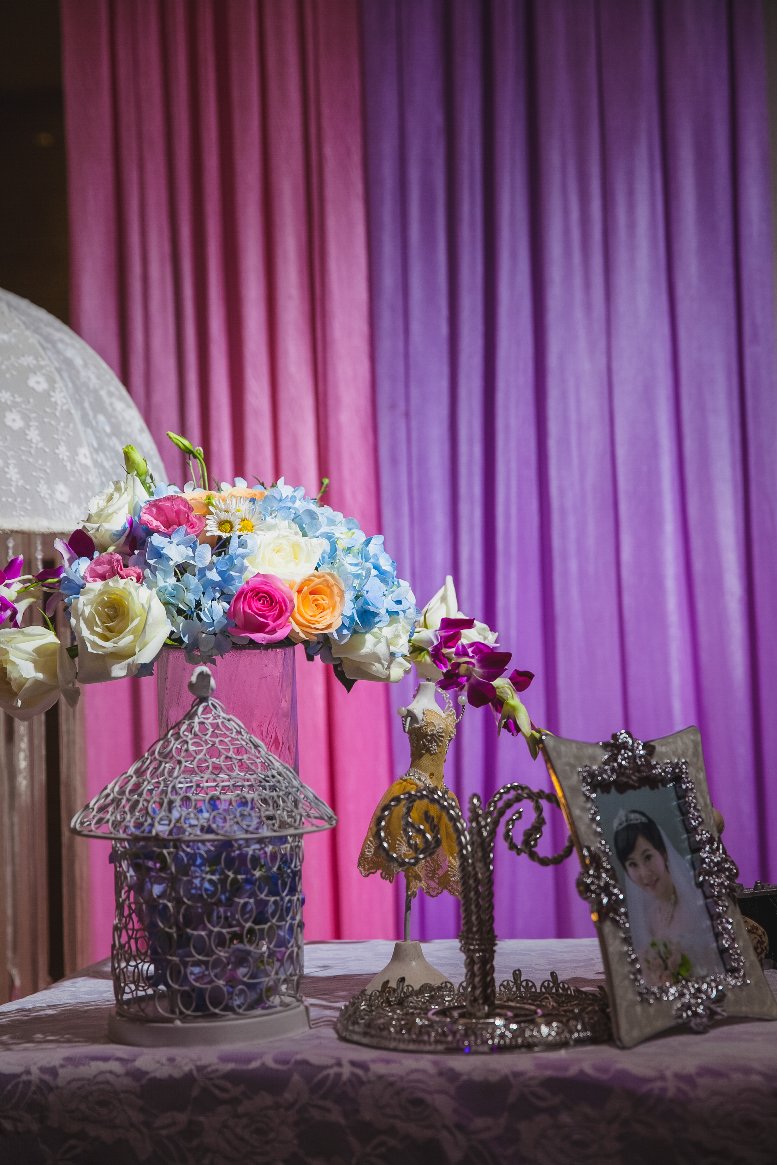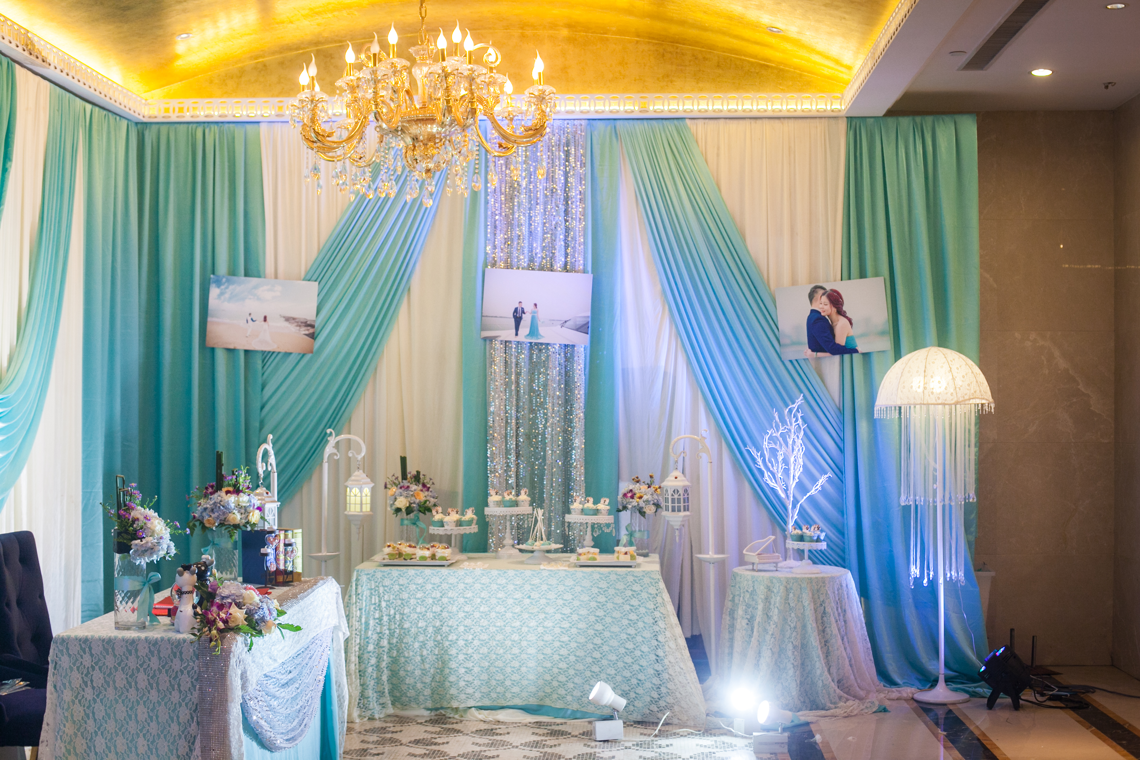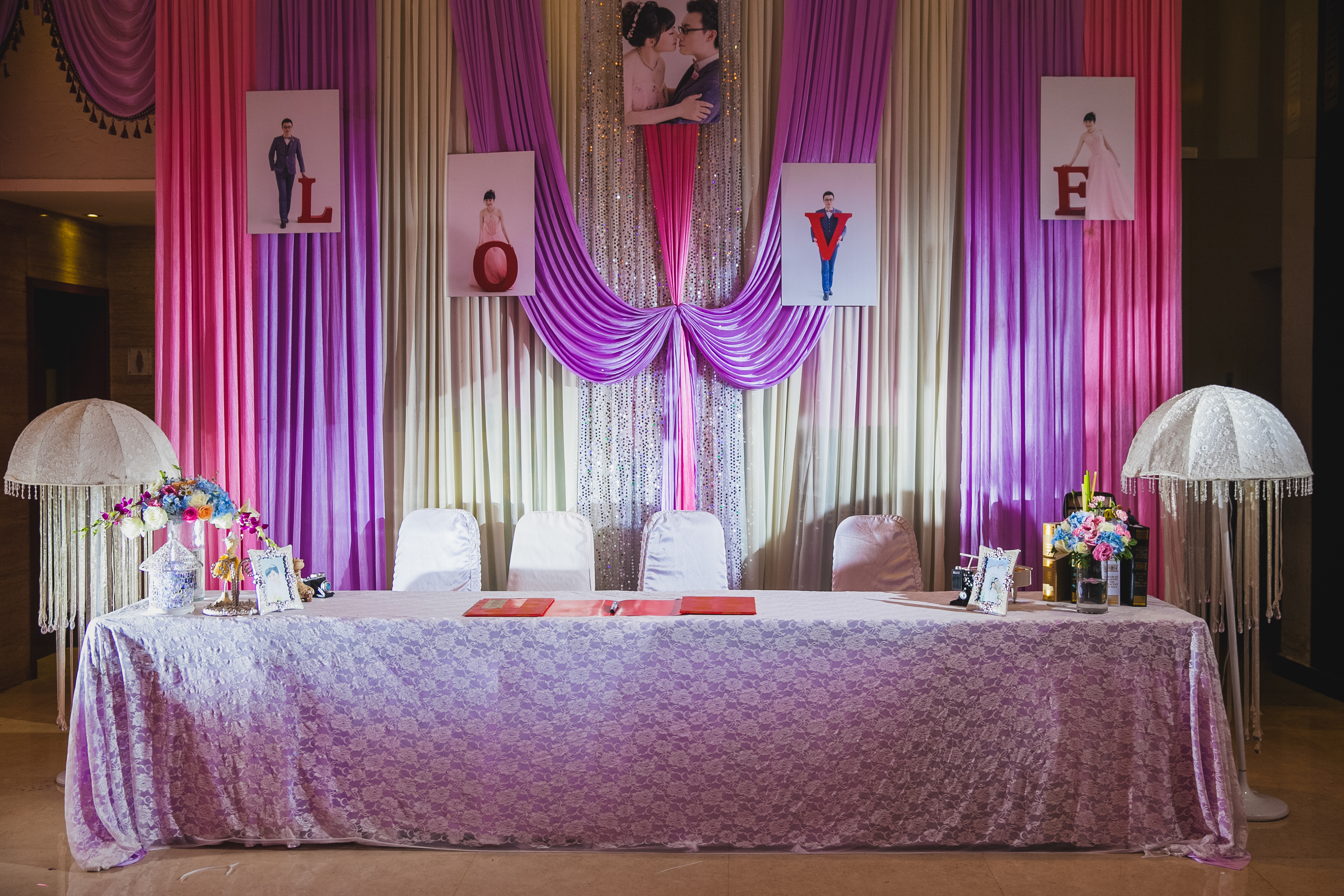 婚礼灯光是婚礼非常重要的环节,我们的灯光都是演唱会级的,亮度充足,灯光师是电视台特约,具有10年舞台灯光操作经验,为您婚礼的视觉达到最佳效果