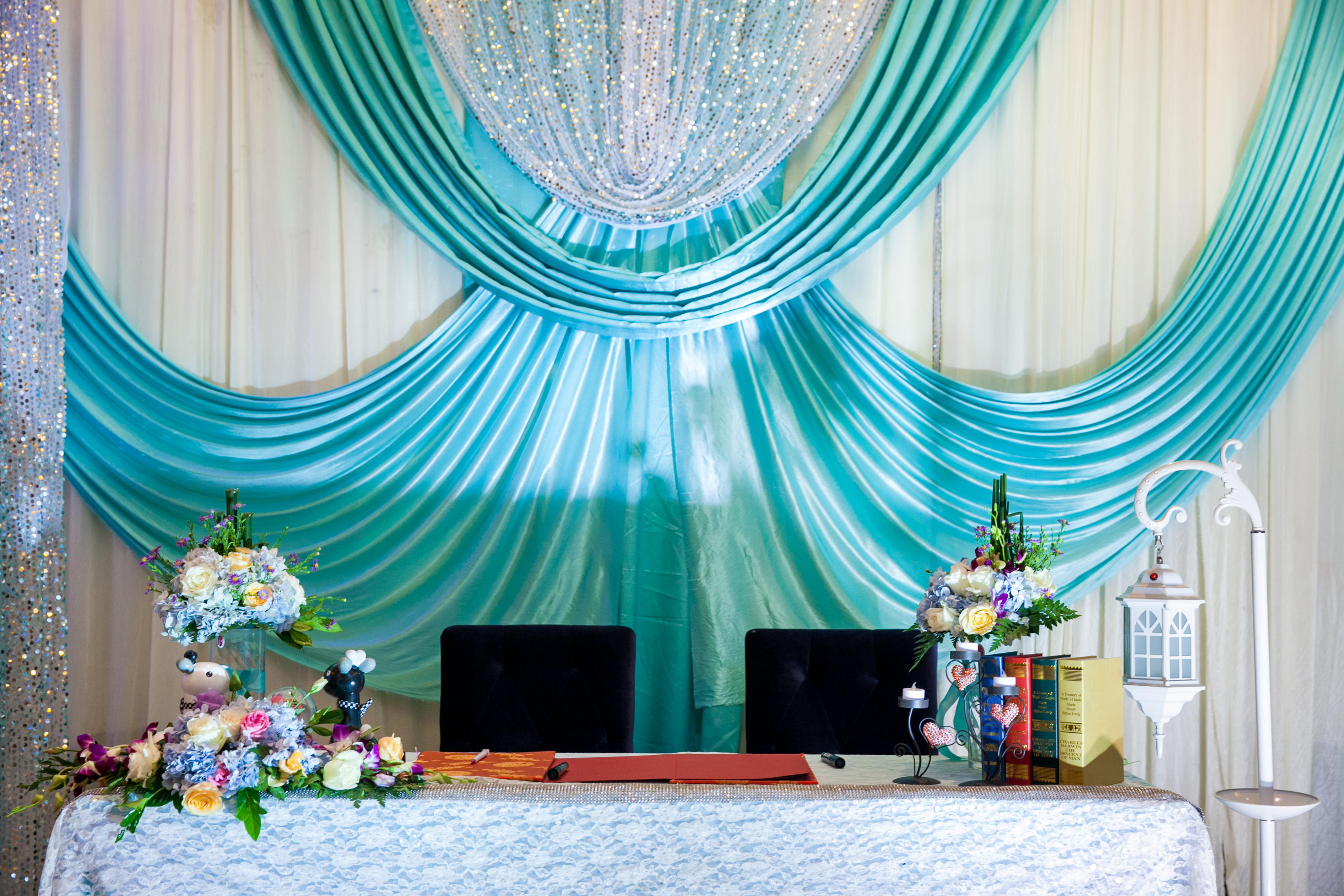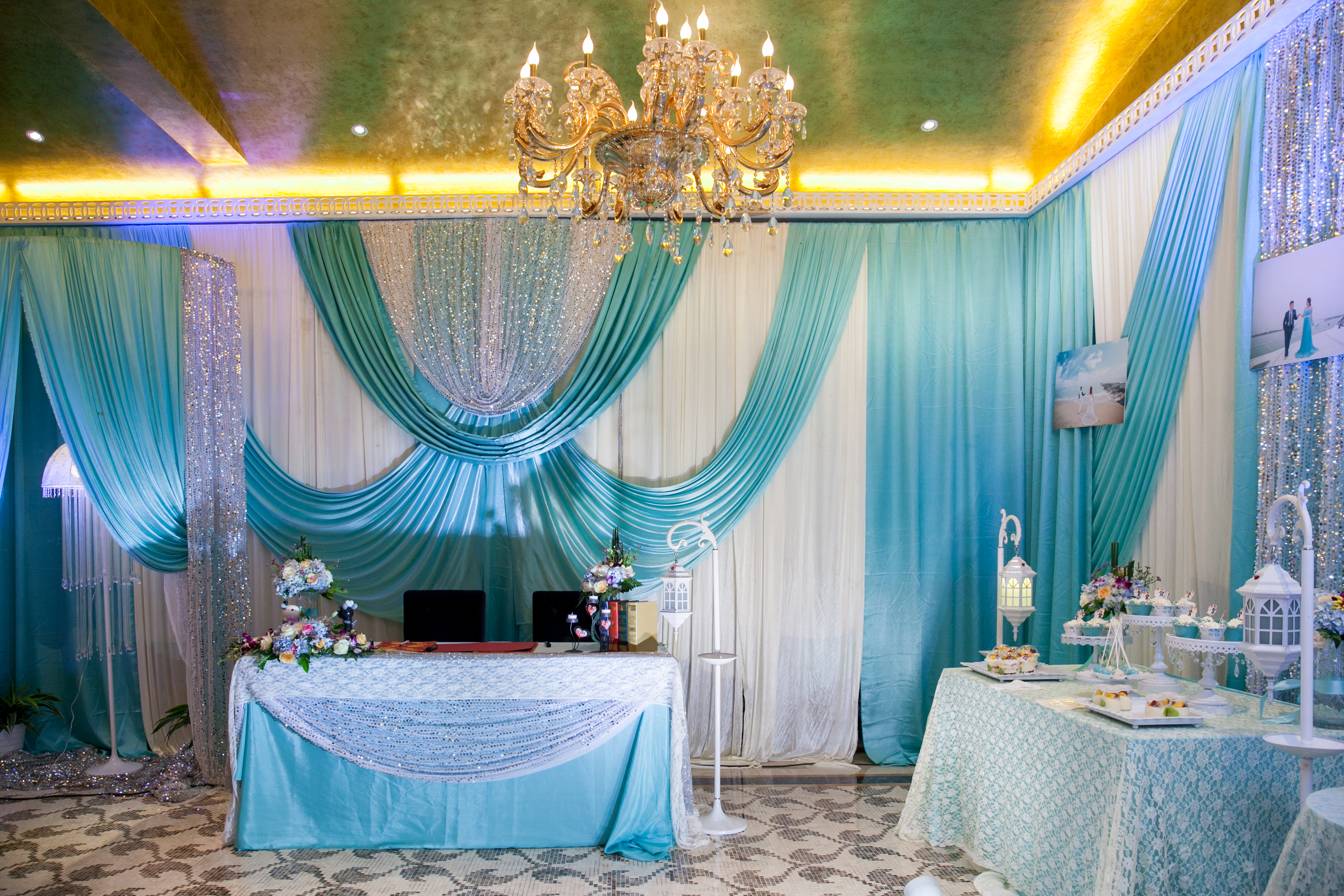 1. 签到台背景欧式布幔设计与装饰(多色任选)