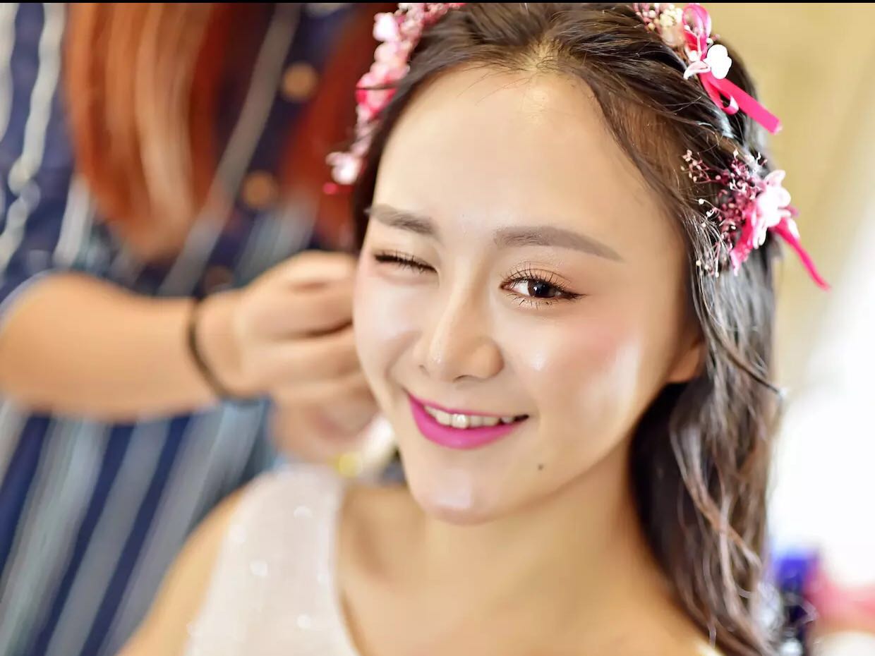 首席化妆老师,根据你的脸型发型和服装的风格,打造不同的造型,让你做个美美的新娘。