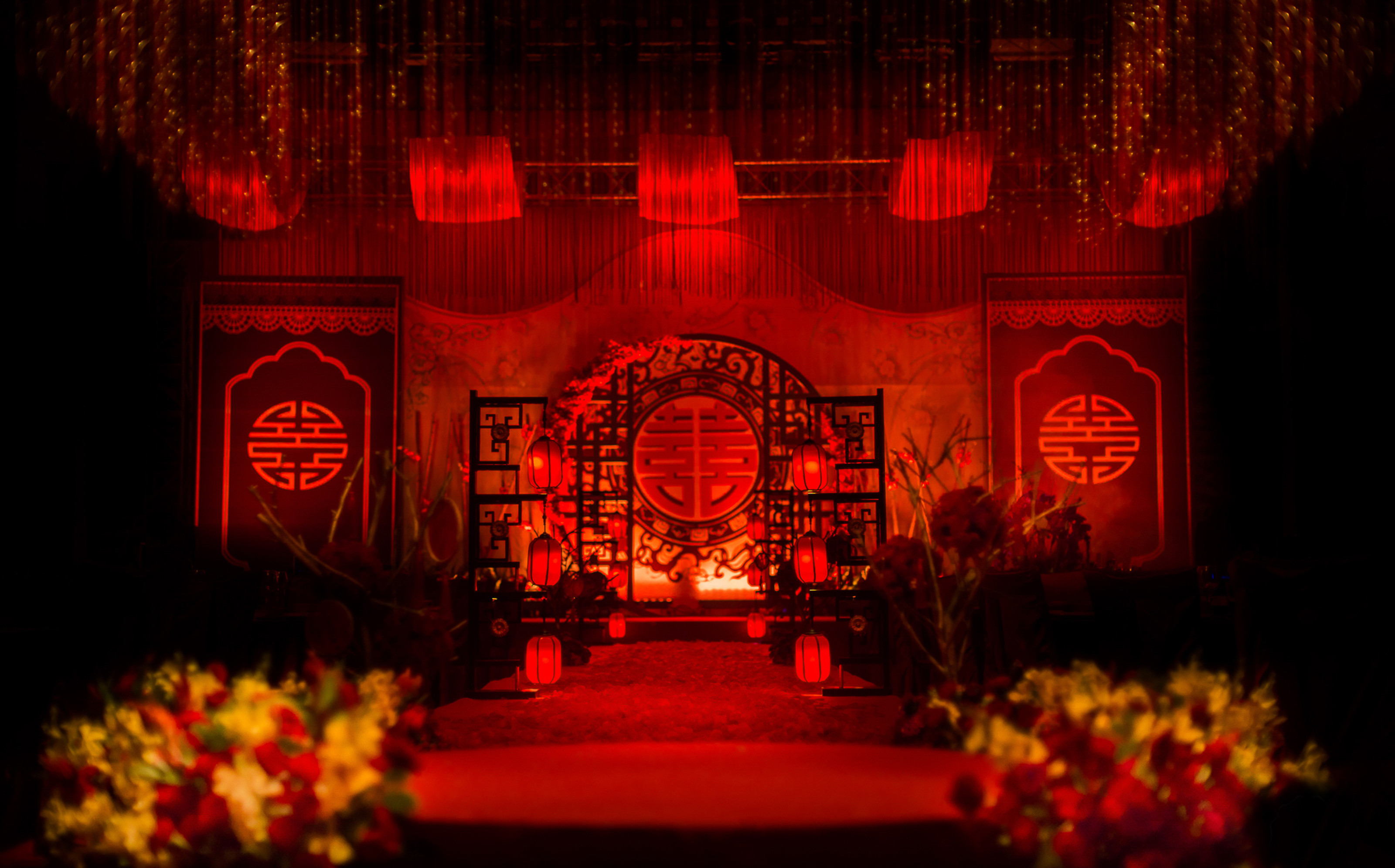 【婚礼舞台区】婚礼舞台区域将根据酒店场地是否存在LED配置等元素进行不同的设计布置,横跨7米为最大尺寸; 【幸福浪漫通道】配置8盏路引灯饰进行布置; 【交接仪式亭】可以选择方形或者圆形仪式亭;