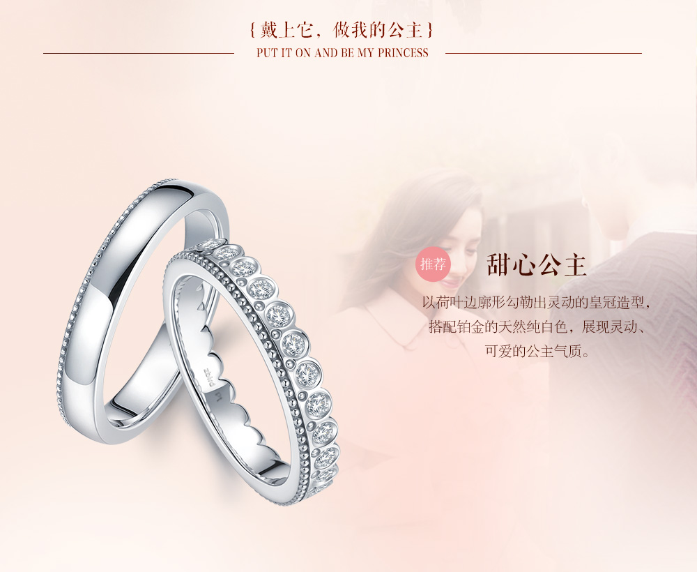 皇冠对戒 戴上它做我一辈子的公主,爱情很纯粹,很简单;无关身份,地位;如果爱了,就让她知道,你心里的城堡只属于她;用你的行动守护她。