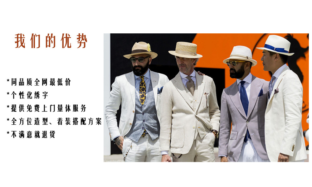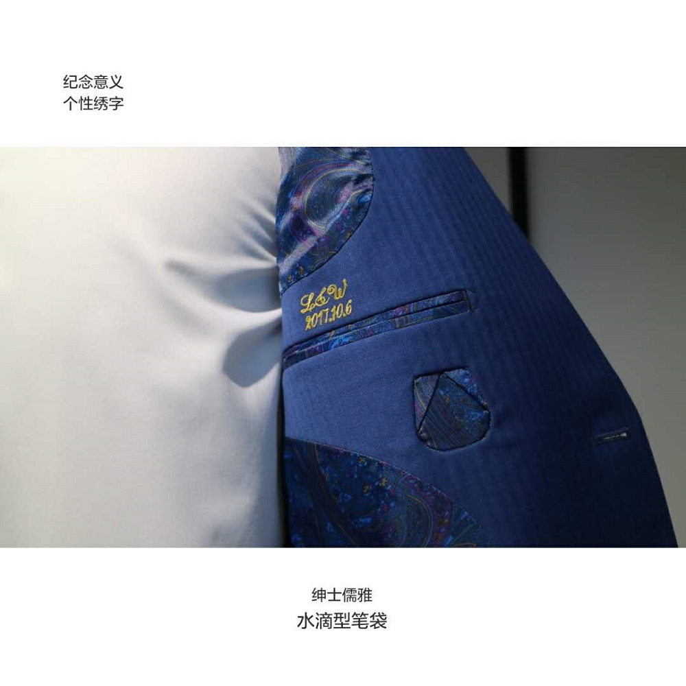 此套餐图片均为栩遥为顾客定制产品实拍图,盗图必究。 特色:个性化绣字,在您一生一次的礼服上绣上纪念意义的字体。 面料:上千种国产优质全羊毛面料供您选择。 版型:一人一版,为你打造你的专属版型;意式改良版型,更符合中国人身型特征。 款式:多种不同的领型、袖型、口袋、后背开叉等细节设计任你挑选,更可接受来图定制。 量体:资深量体师为您量取身体的21个部位的数据,确保西服的合体度。