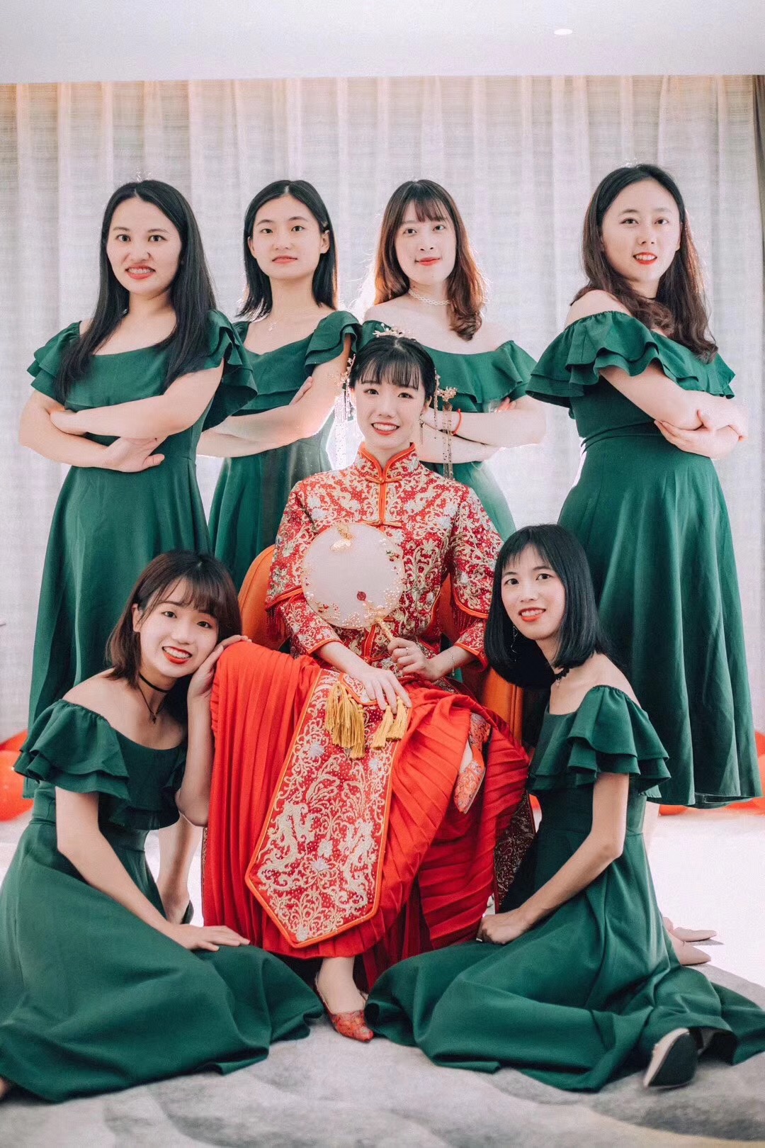 全天跟妆送妈妈妆一位,伴娘妆一位,姐妹妆五位。