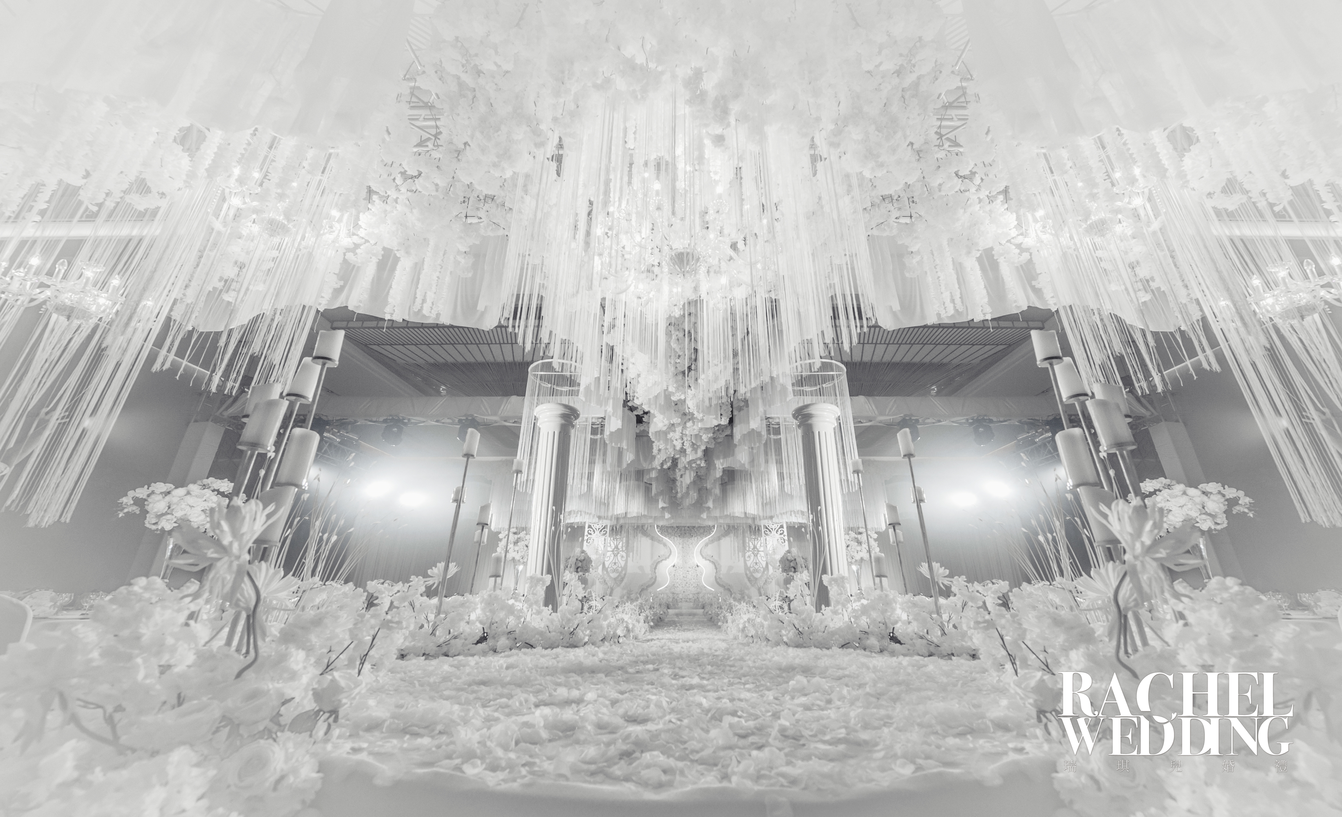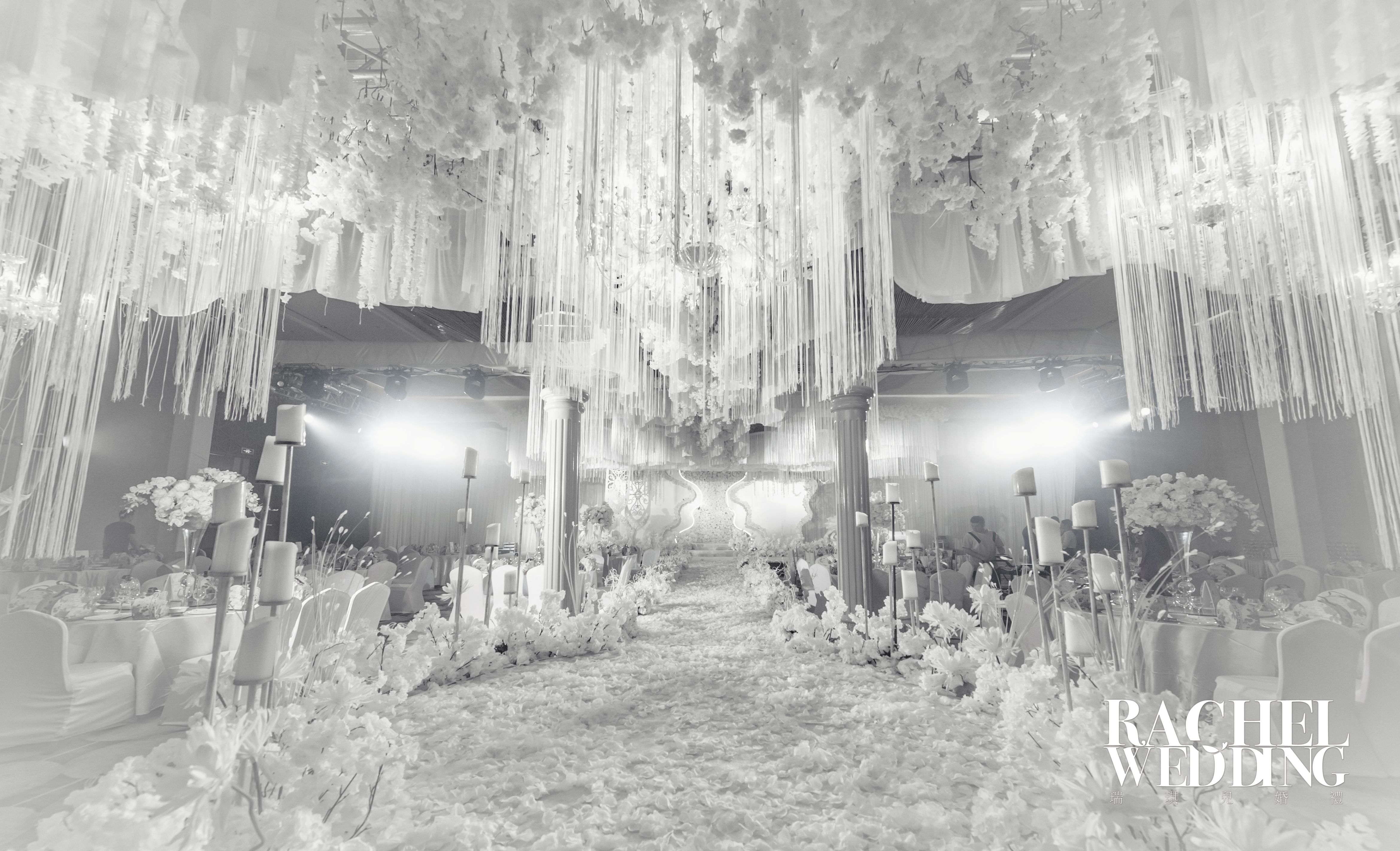 主题舞台背景设计制作 主题道具美陈制作 舞台地毯铺设 仿真花艺设计制作 T台搭建 T台地毯铺设 路引摆设 详细信息请咨询店内婚礼策划师