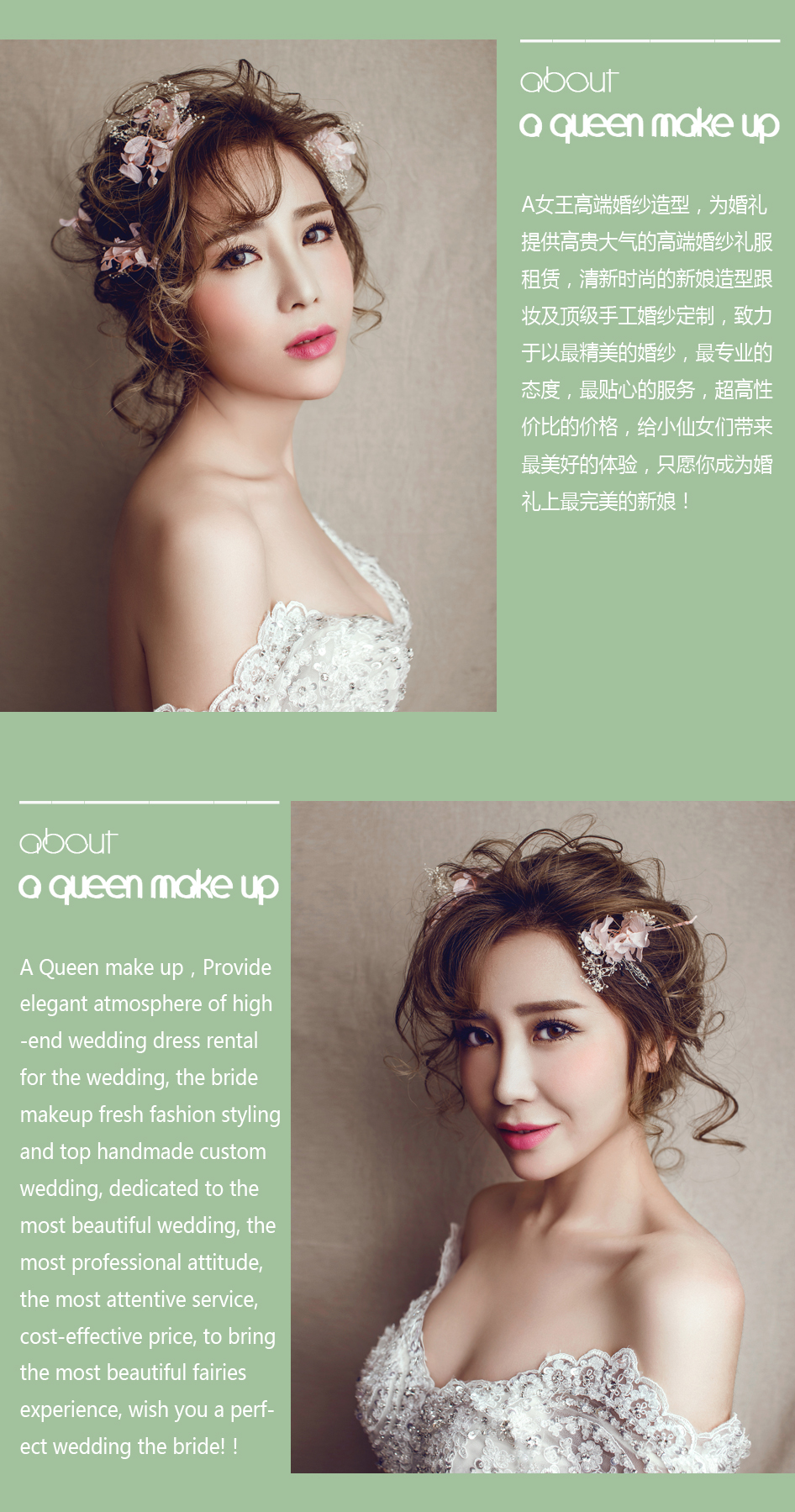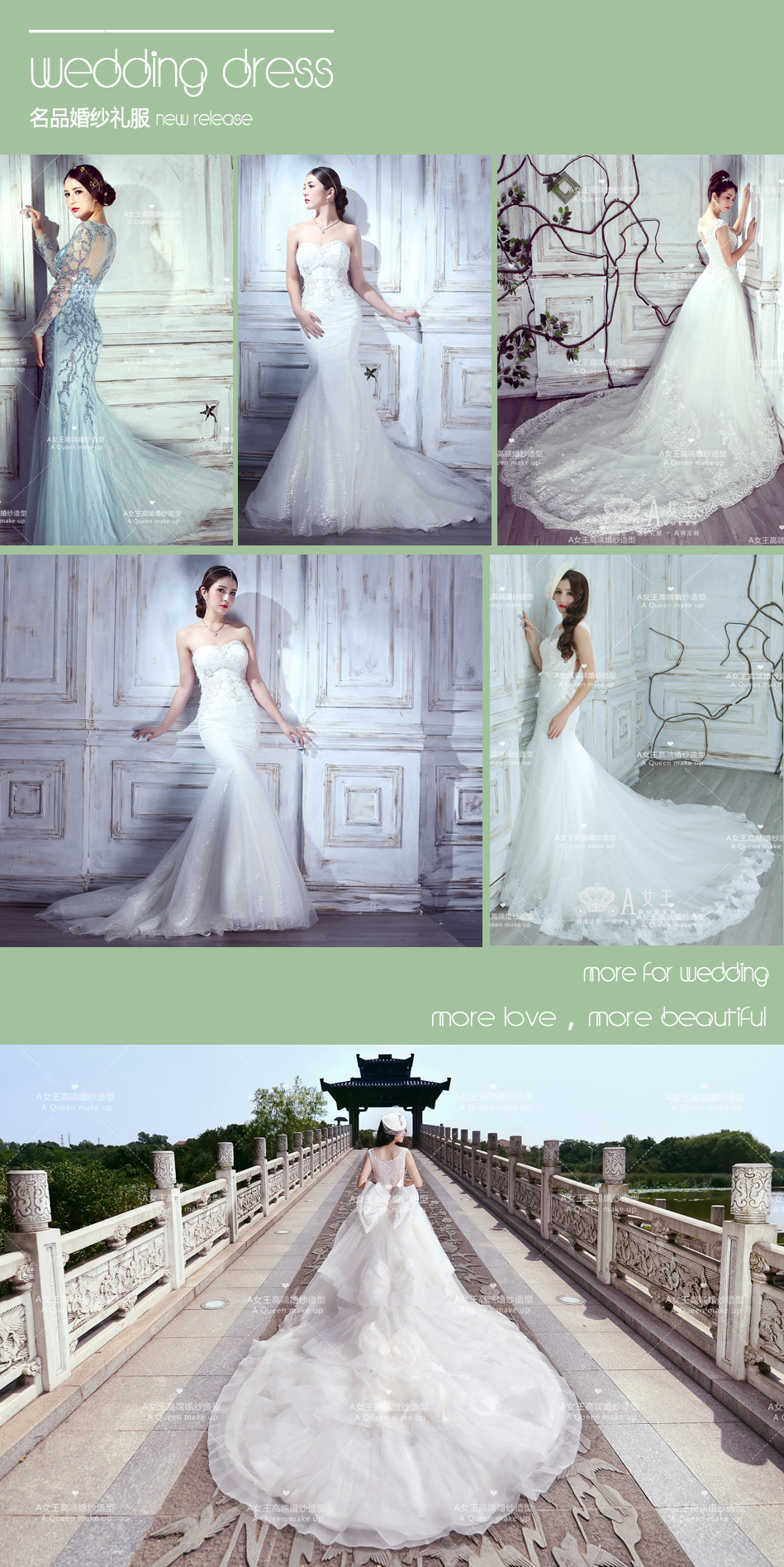 『A Queen』高端精致婚纱+礼服+新娘跟妆