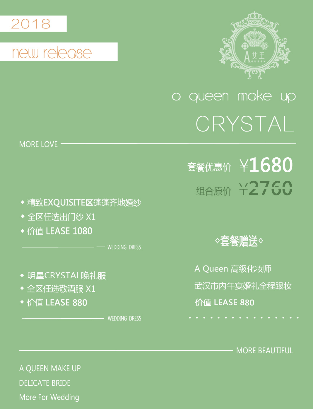 『A Queen』高端定制婚纱套餐+跟妆