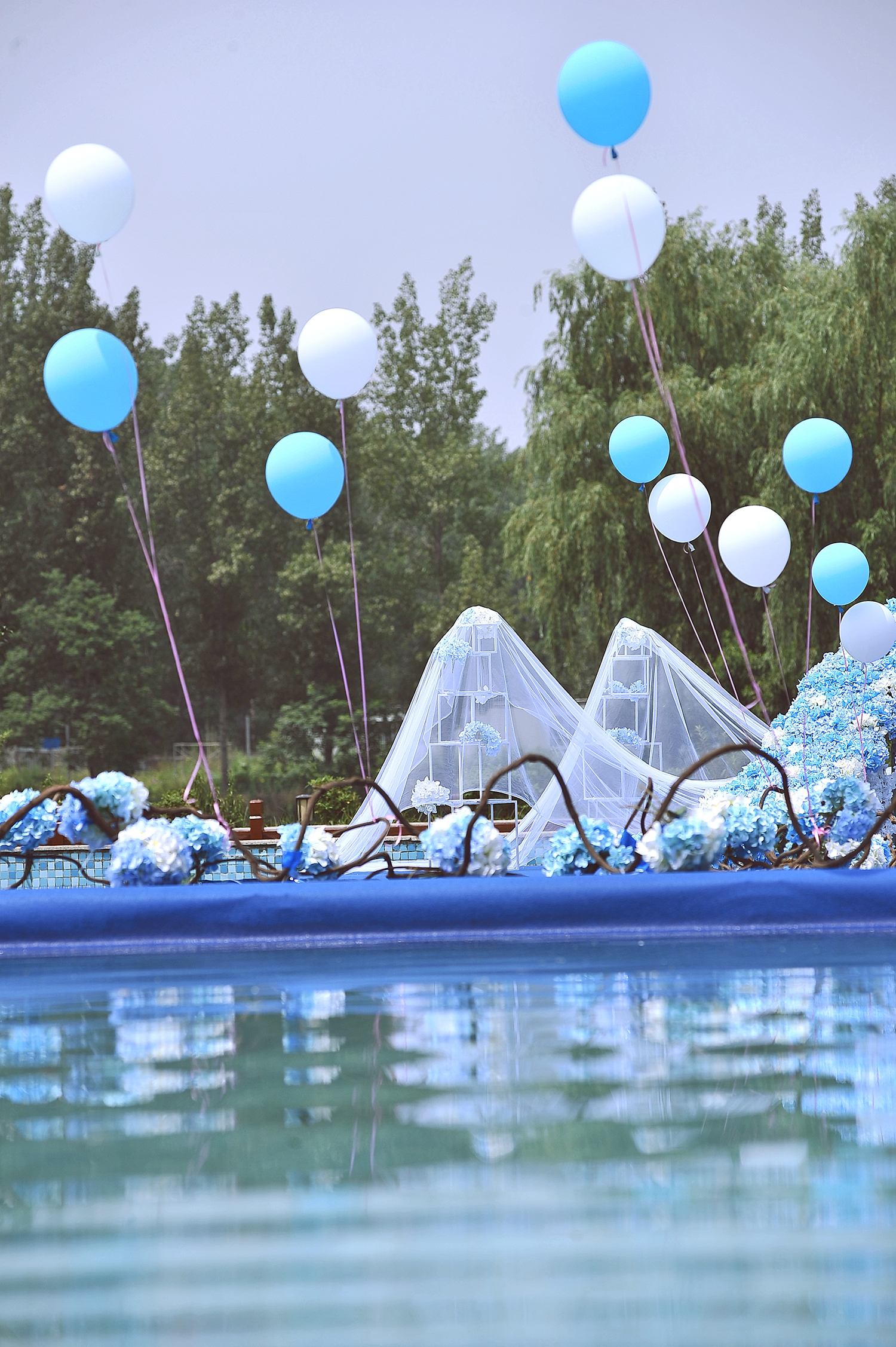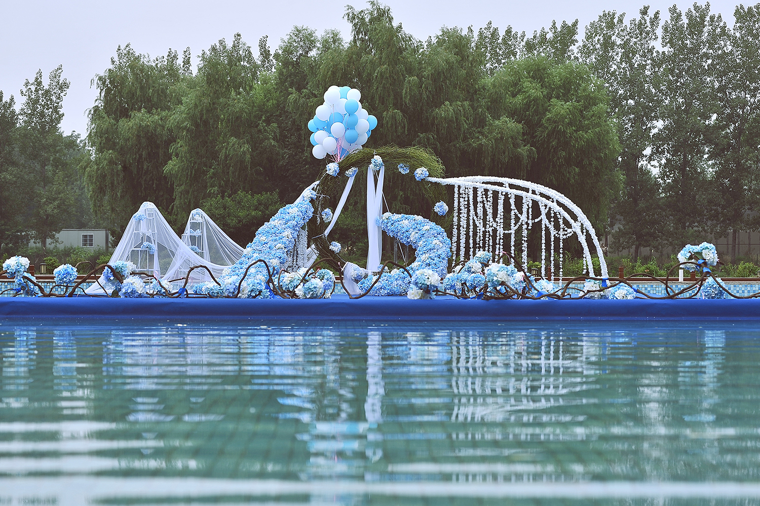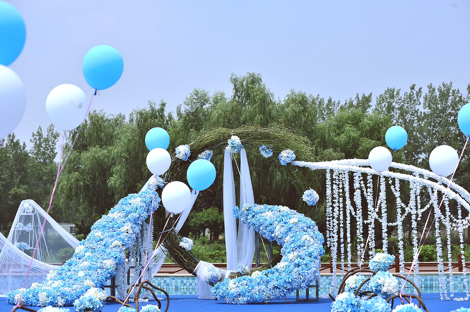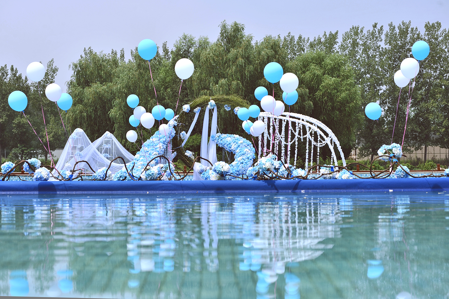 郑州汇爱婚礼 仙客来访 户外、蓝色大气游泳池婚礼