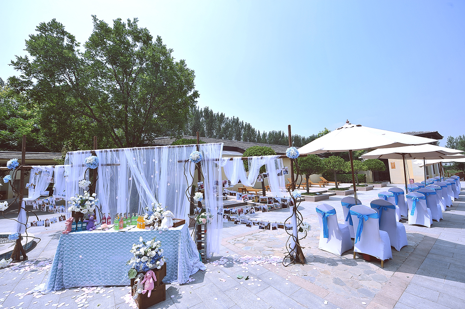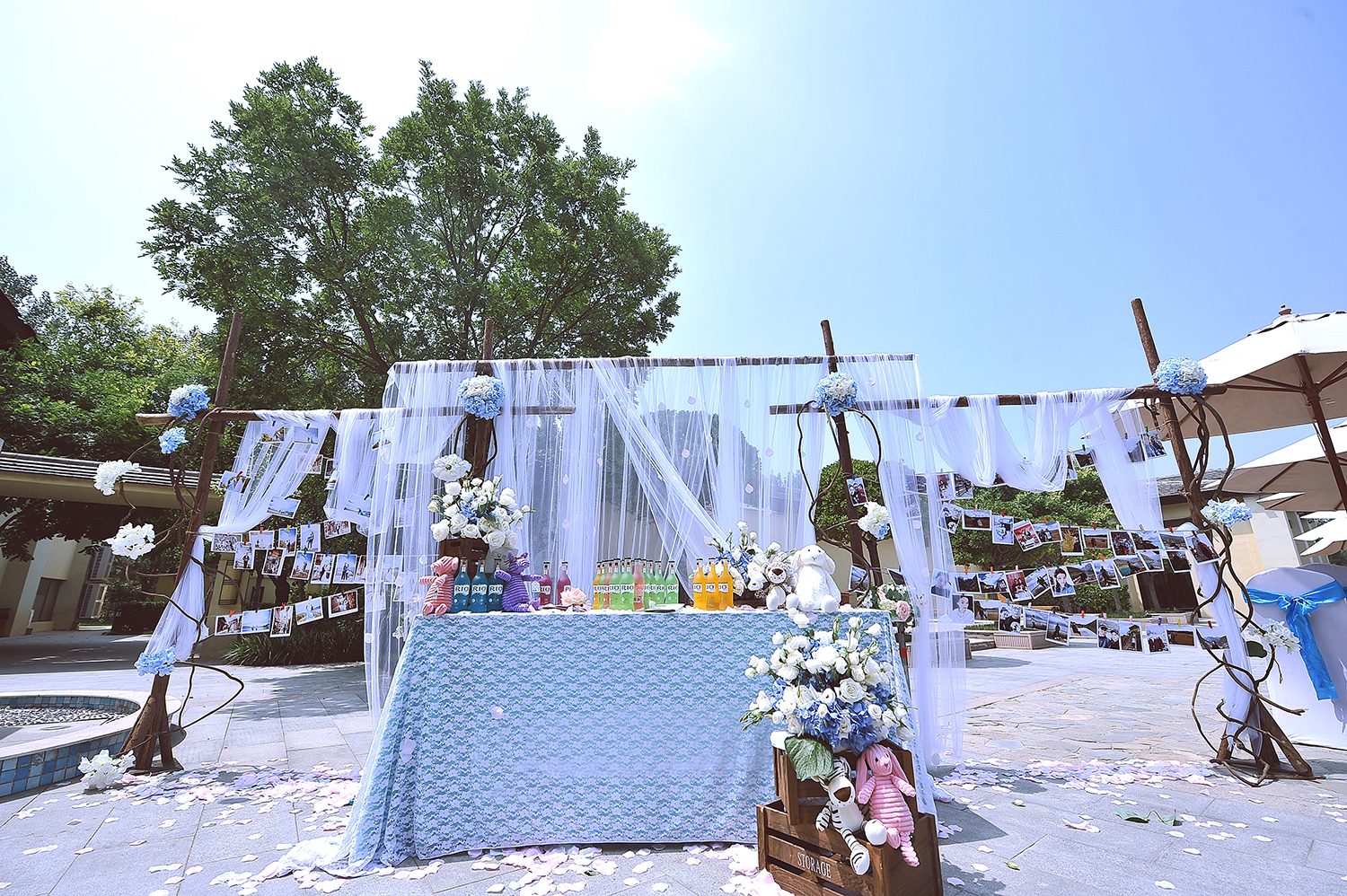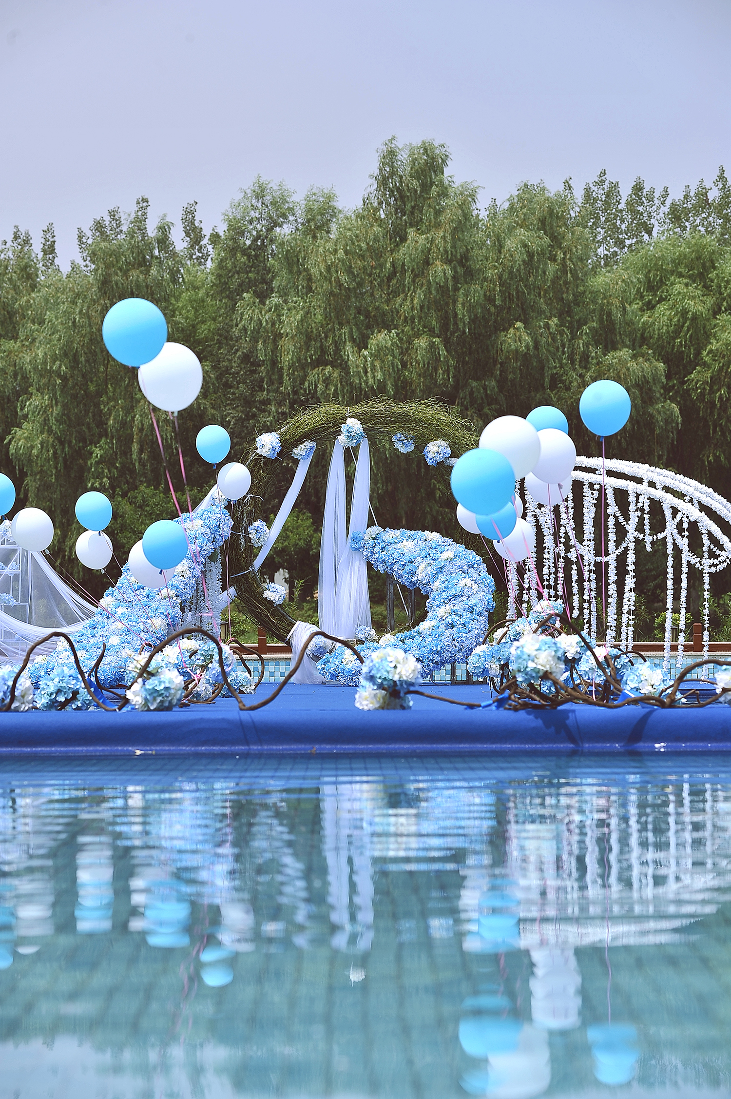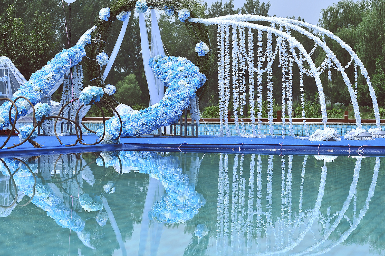 郑州汇爱婚礼 仙客来访 户外、蓝色大气游泳池婚礼