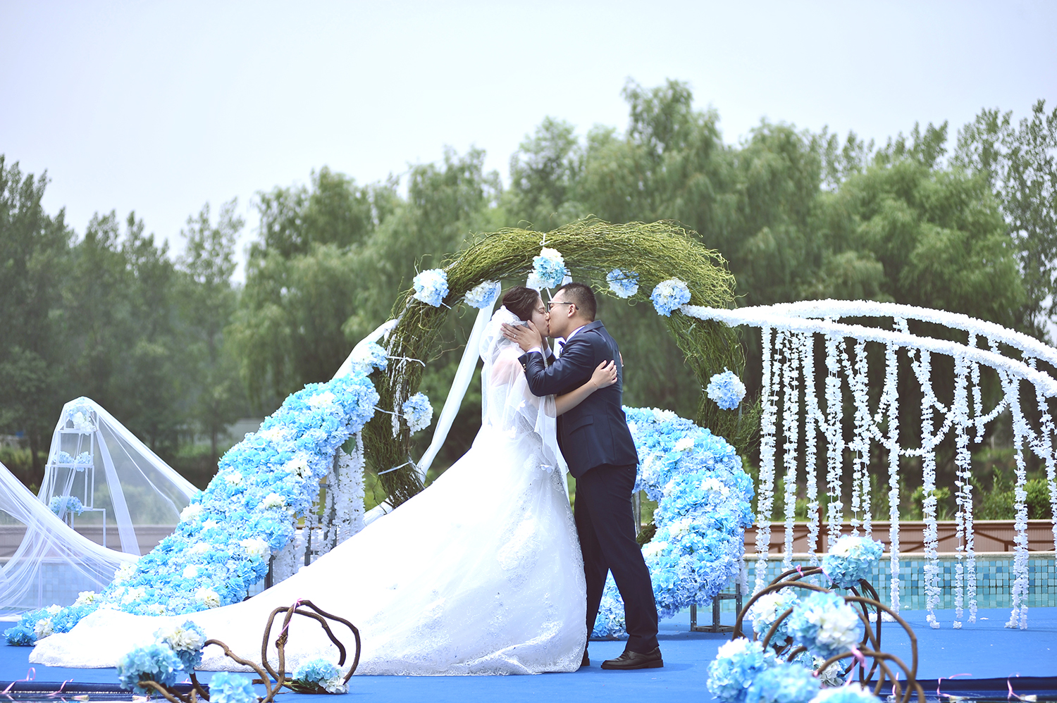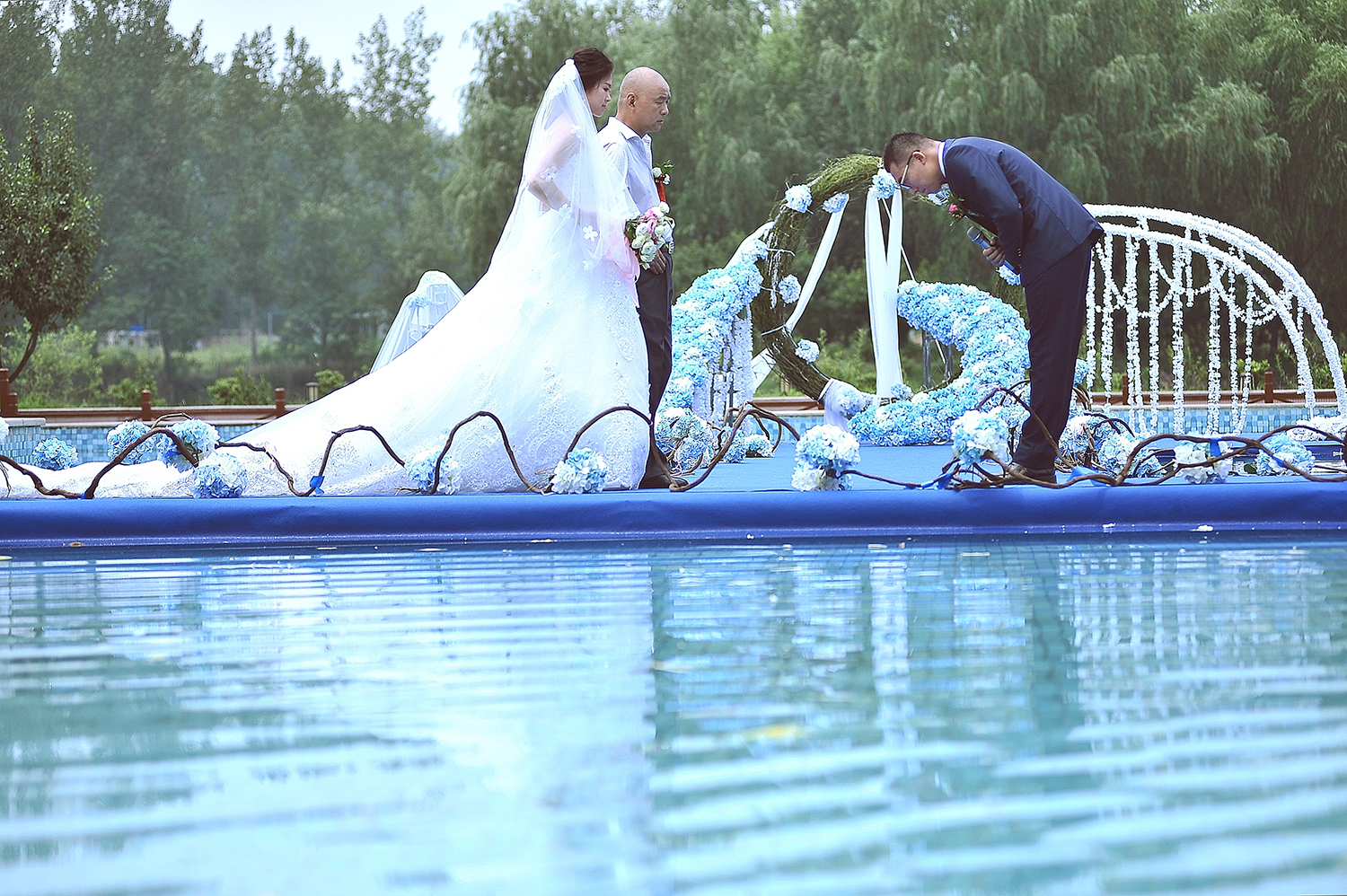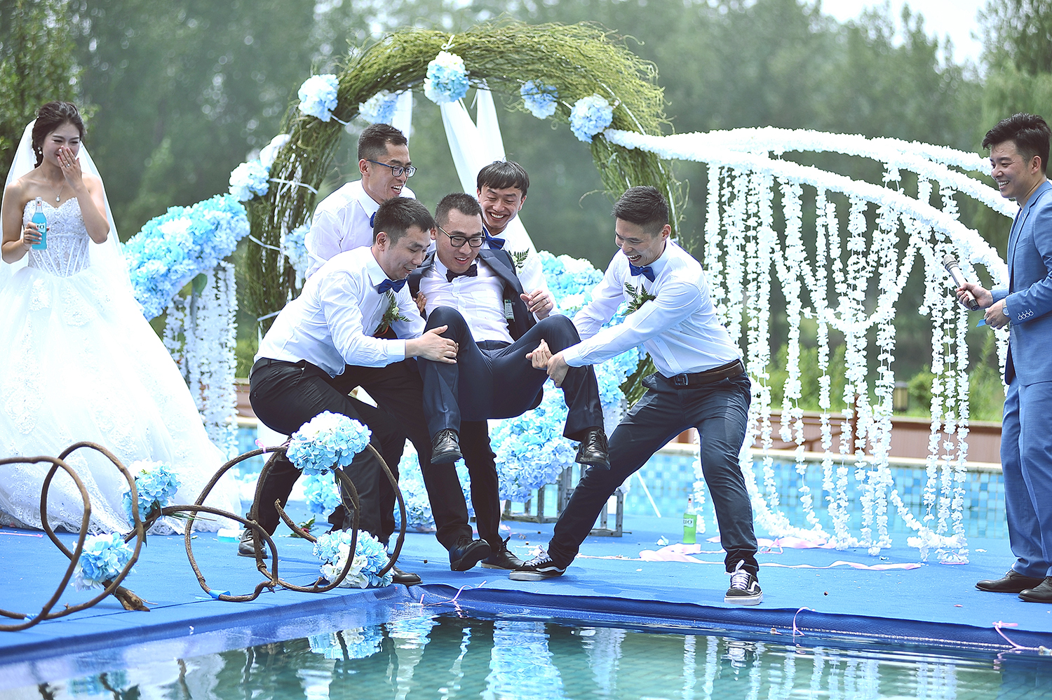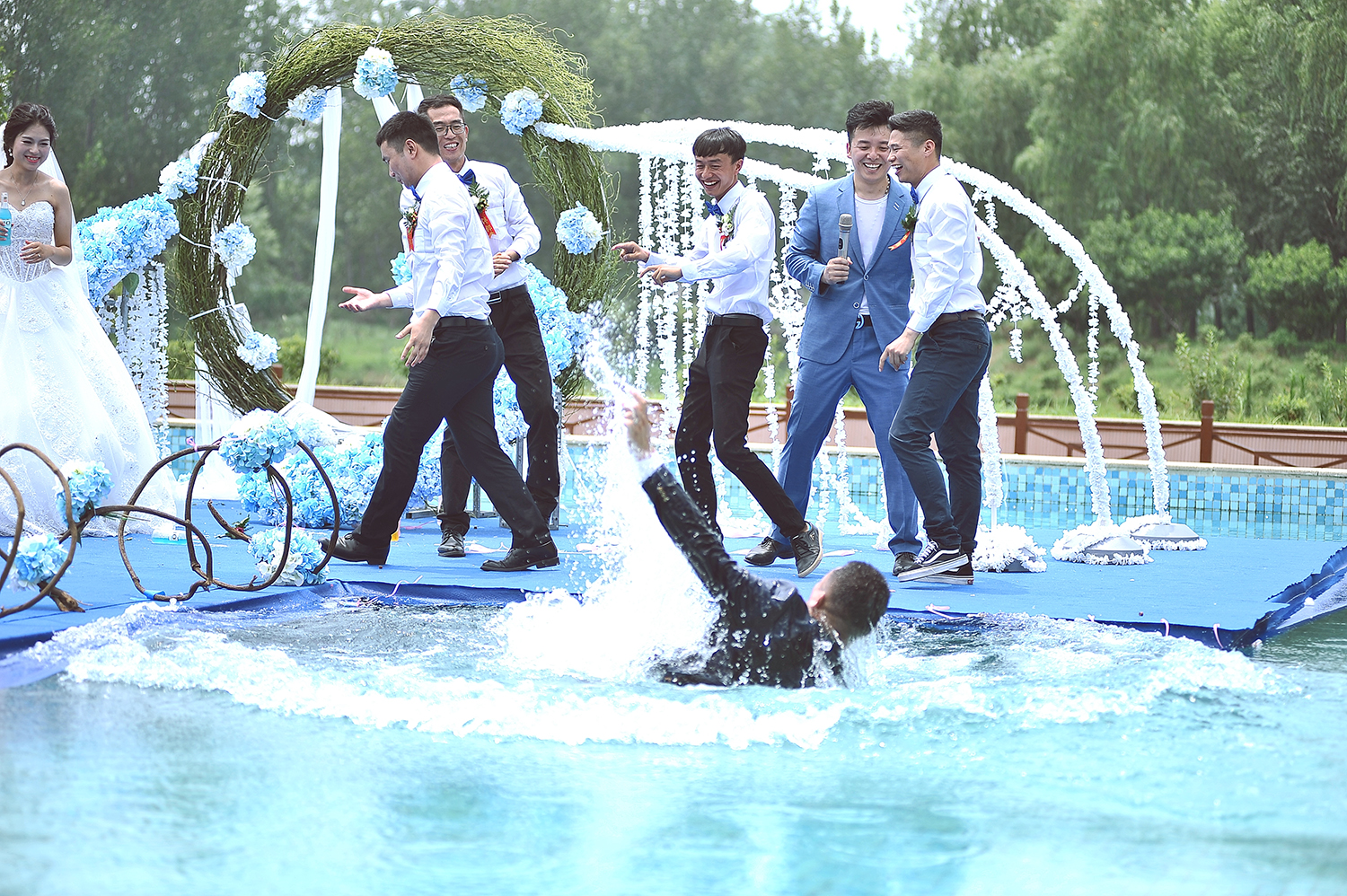 蓝色大气游泳池婚礼