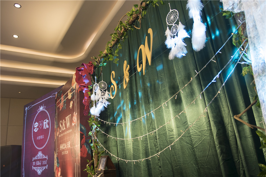 签到区背景搭建 签到桌摆台 签到区道具装饰 婚礼座次表背景搭建 引导牌制作 展示区背景搭建 展示区背景平面设计 婚礼主题logo设计 主题定制礼金箱