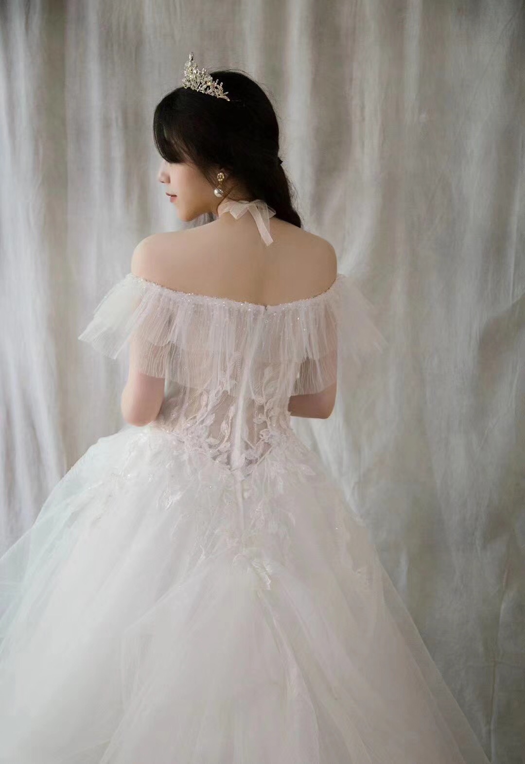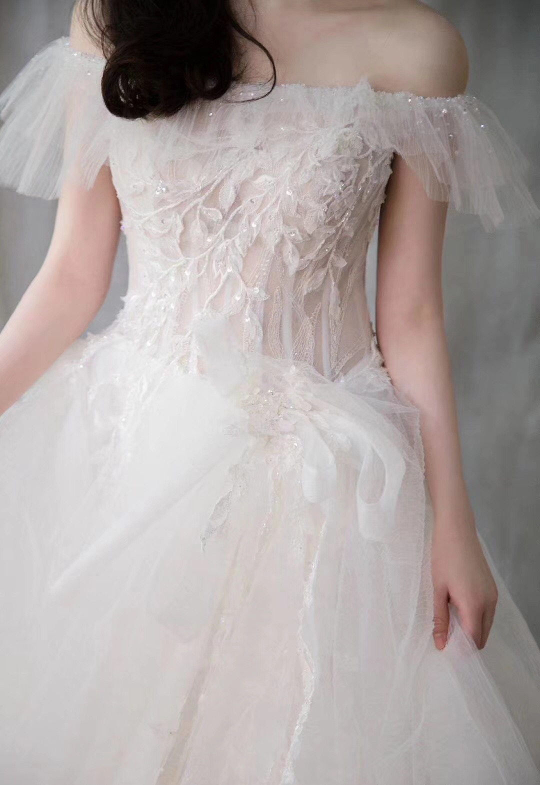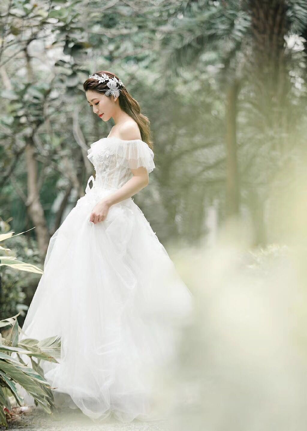 轻纱一字肩型镶钻