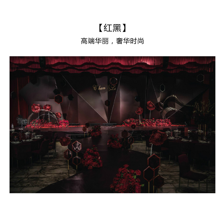 花艺装饰 30个;定制道具 30个;红黑设计 30个;细节装饰 50个