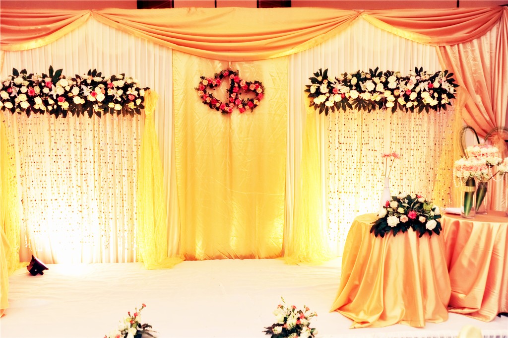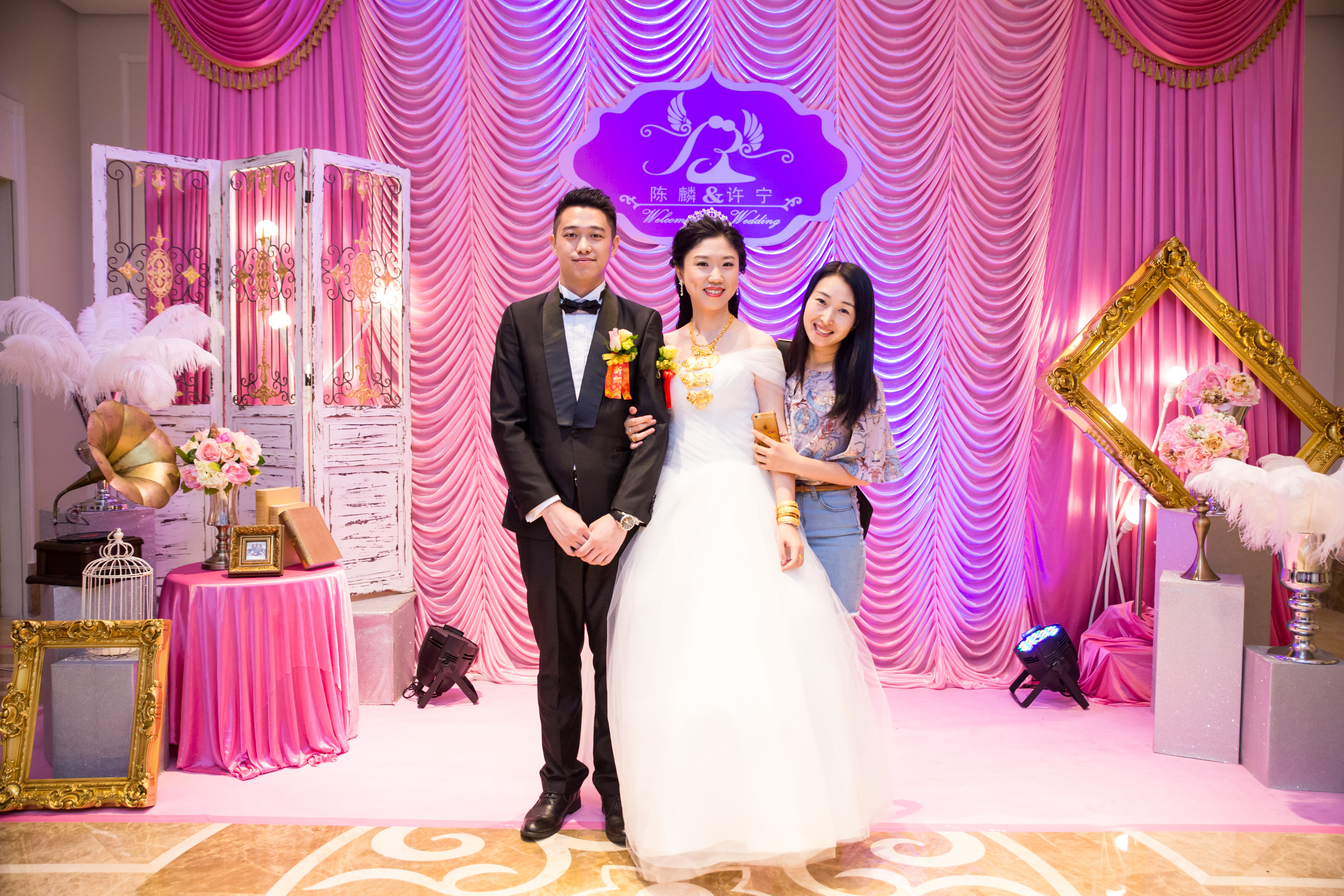 婚礼布置包含:签到台+留影区+ 相片区+仪式亭+路引+ 舞台+ LED灯光 。 服务团队:主持+化妆+摄影+录像+即影即有