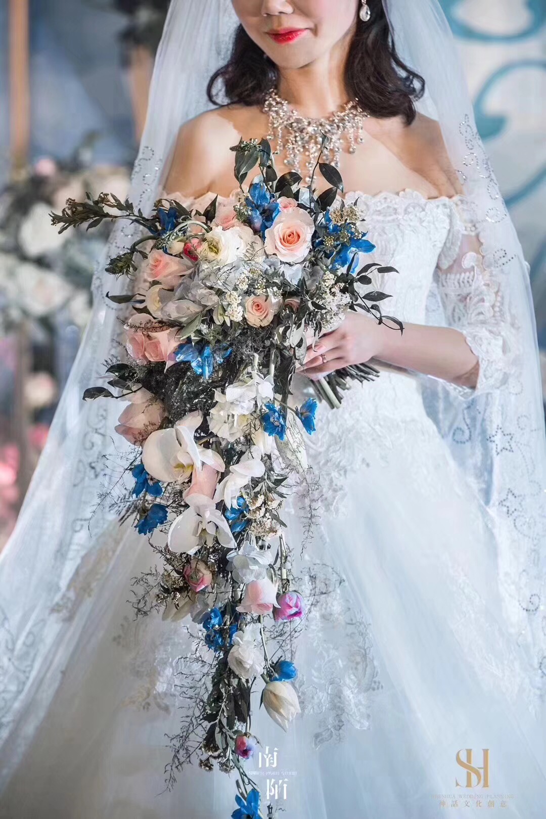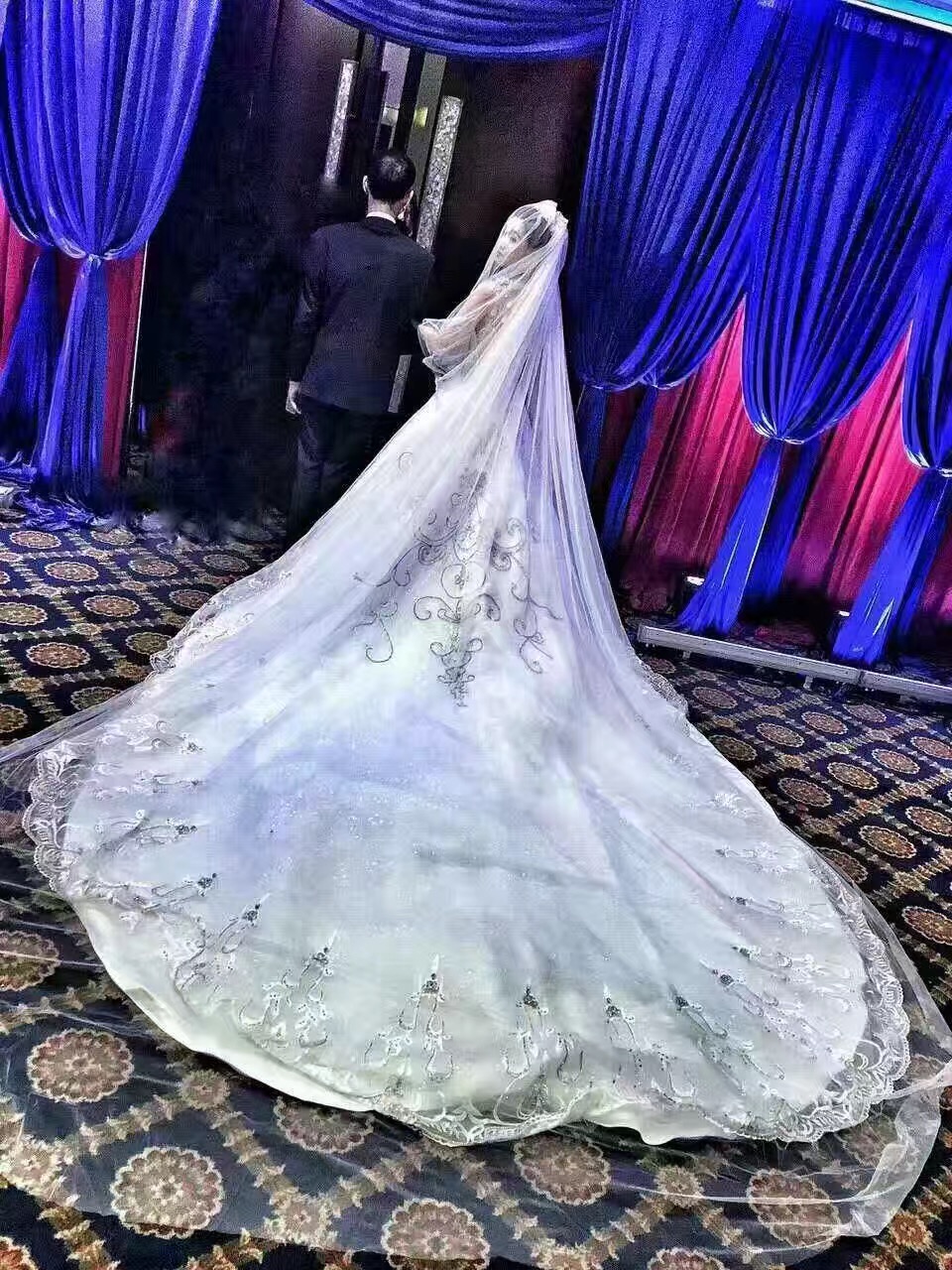 蓝色梦幻婚纱礼服七件套