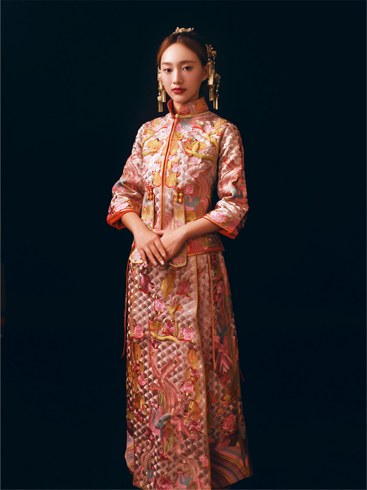 更多款式请到店试穿挑选 女神系列拖尾主纱 一件 高档出门纱/禾服 一件 高档礼服 一件 高档伴娘服 四件 妈妈妆 一份