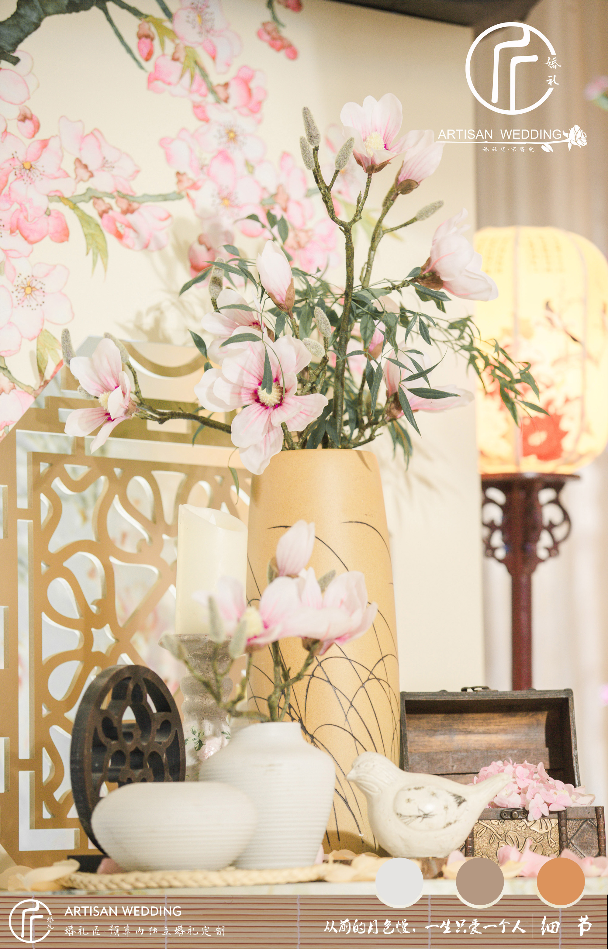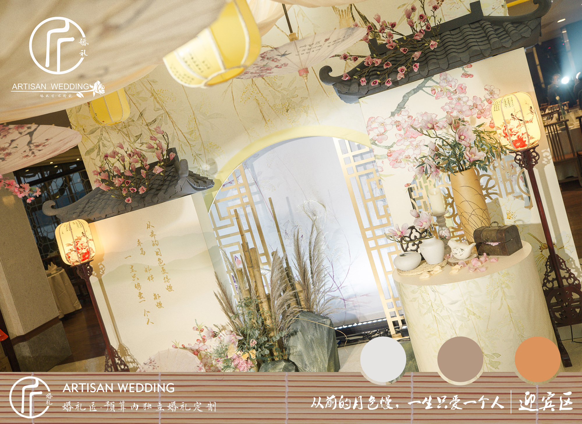 【5】签到台主题布置(古风灯、古风凳、团扇、中式花瓶等装饰)