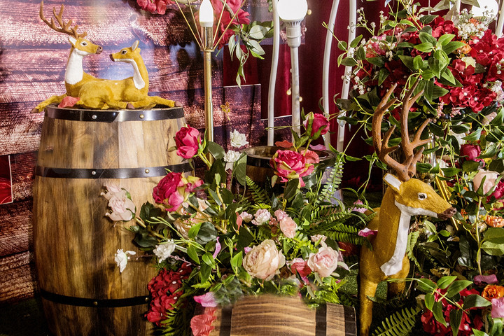 木桩或木桶精致花艺布置。
