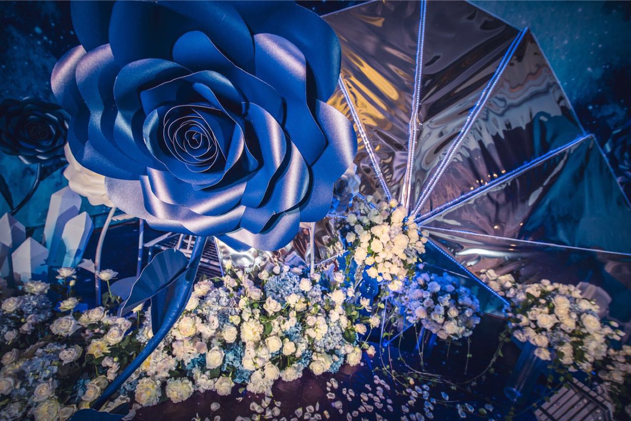 超大豪华布艺帷幔背景(复式三块背景)结合 KT 板造型/豪华布艺帷幔,高清写真喷绘,组合背景/豪华布艺背景和 KT 板造型组合背景/豪华飘顶一个,结合 KT 板造型;精美定制雪弗板花瓣装饰 1 组;设计师一对一专设计属设计 KT 板造型;豪华金色罗马盆路引和花艺装饰 8 个/花瓣龙珠灯路引 8 个(二选一);欧式时尚铁艺贵妃椅 1 套和花艺装饰;豪华浪漫高仿真樱花树 1 棵;专业钢结构 T 台 ;T 台末端方形交接仪式舞台;T 台两侧高仿真花艺花排;红地毯或主题色地毯或镜面地毯;T 台交接仪式区樱花拱门 1 座;高档水晶吊灯 2 盏;精美亚克力直筒玻璃花瓶 24个;水晶珠帘数串。