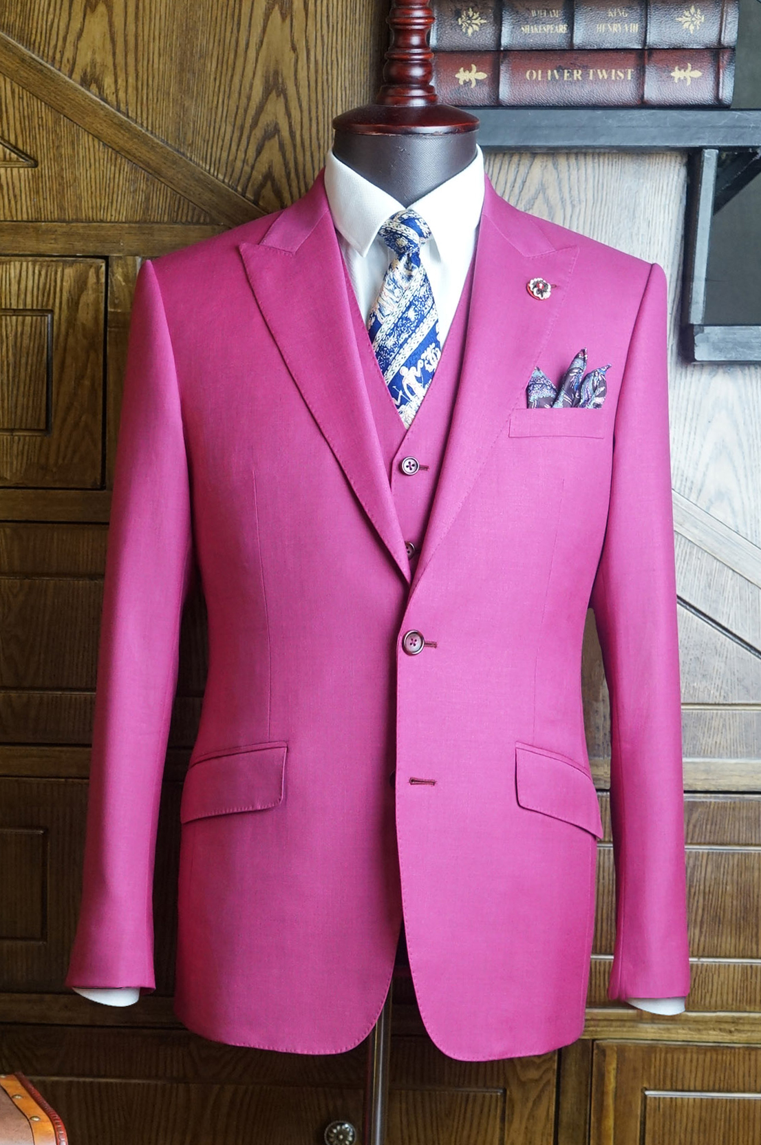 【深岚样衣】玫红色简约西服