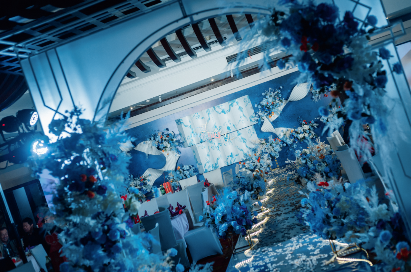 一场婚礼最重要的就是人物灯光,先保证人物着光之后我们再去考虑环境光,环境光是用来渲染环境的,也就是整个现场的灯光色彩,就例如帕灯、图案灯。摇头灯等等。