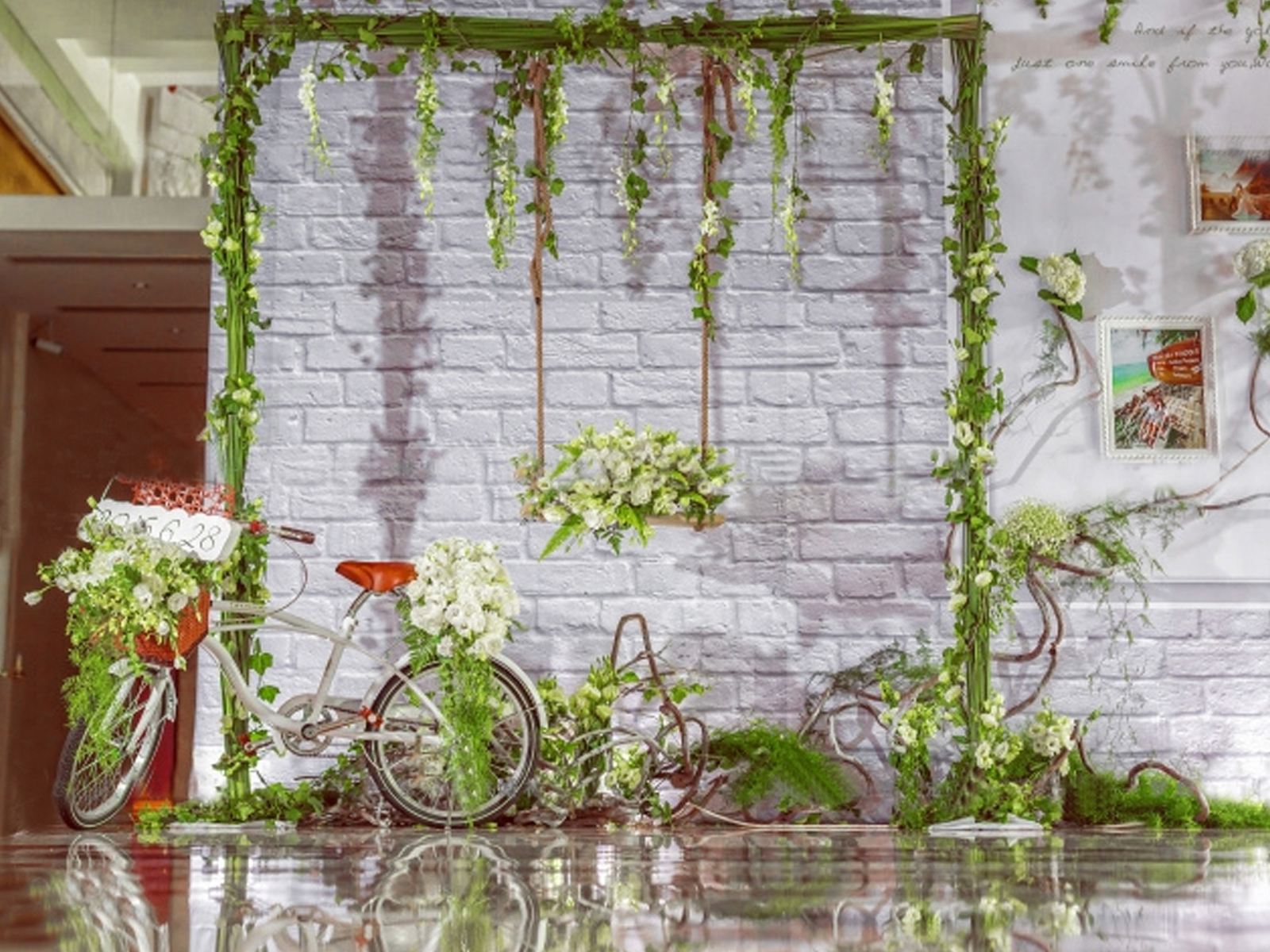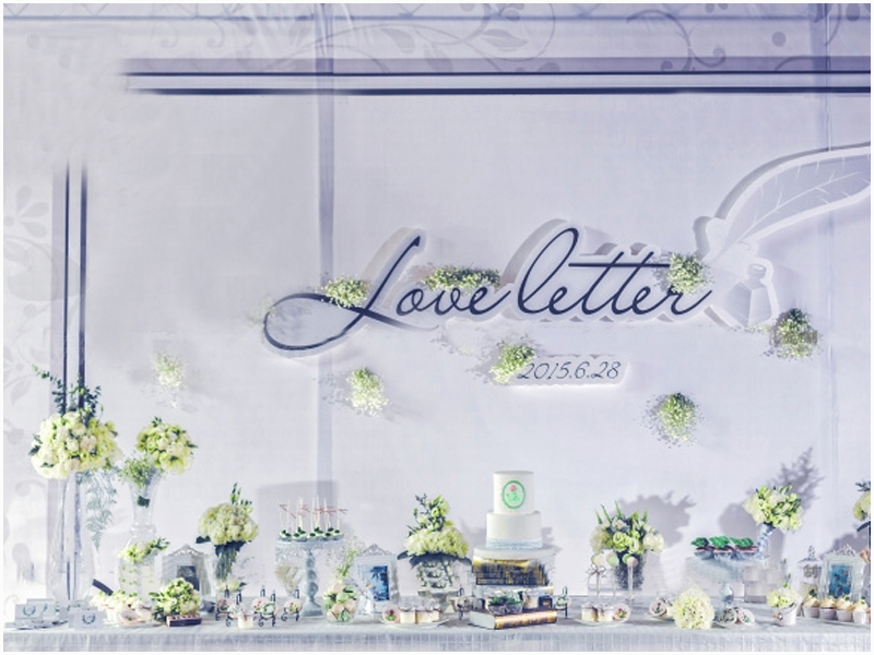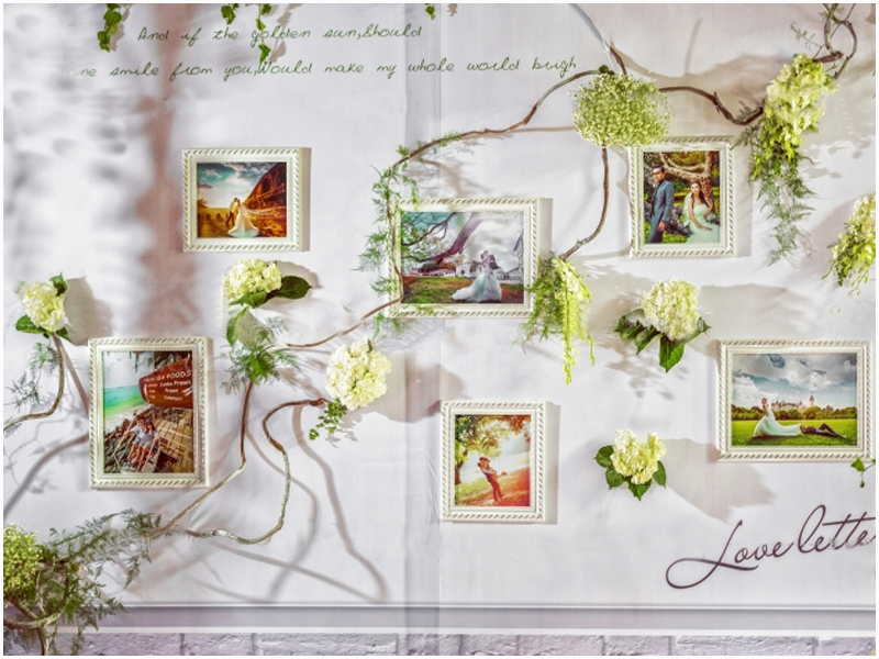 清新的校园风迎宾区,有签到、拍照、展示三个部分组成;