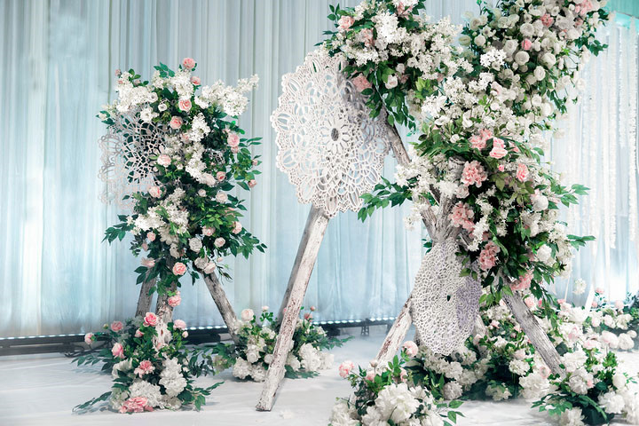 仪式区拱门新款金属交替造型。