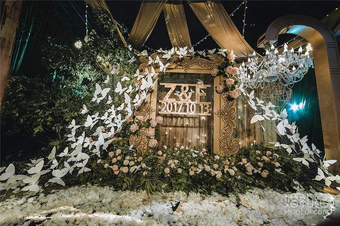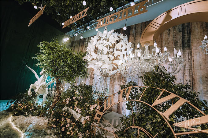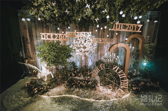 1 唯美LOGO灯光立体背景(限4*8米 ) 2 唯美主题色系鲜花半拱门 3 精美造型鲜花立柱8个 4唯美主桌造型双层鲜花装饰 5 唯美主桌椅背缎带装饰 6 唯美客桌鲜花装饰15桌 7 唯美鲜花大烛台+精美鲜花点火棒 8 舞台专用大功率追光灯二台(含人工) 9舞台专用大型七彩泡泡机一台(含人工) 10 舞台大型电脑360度摇头灯二台