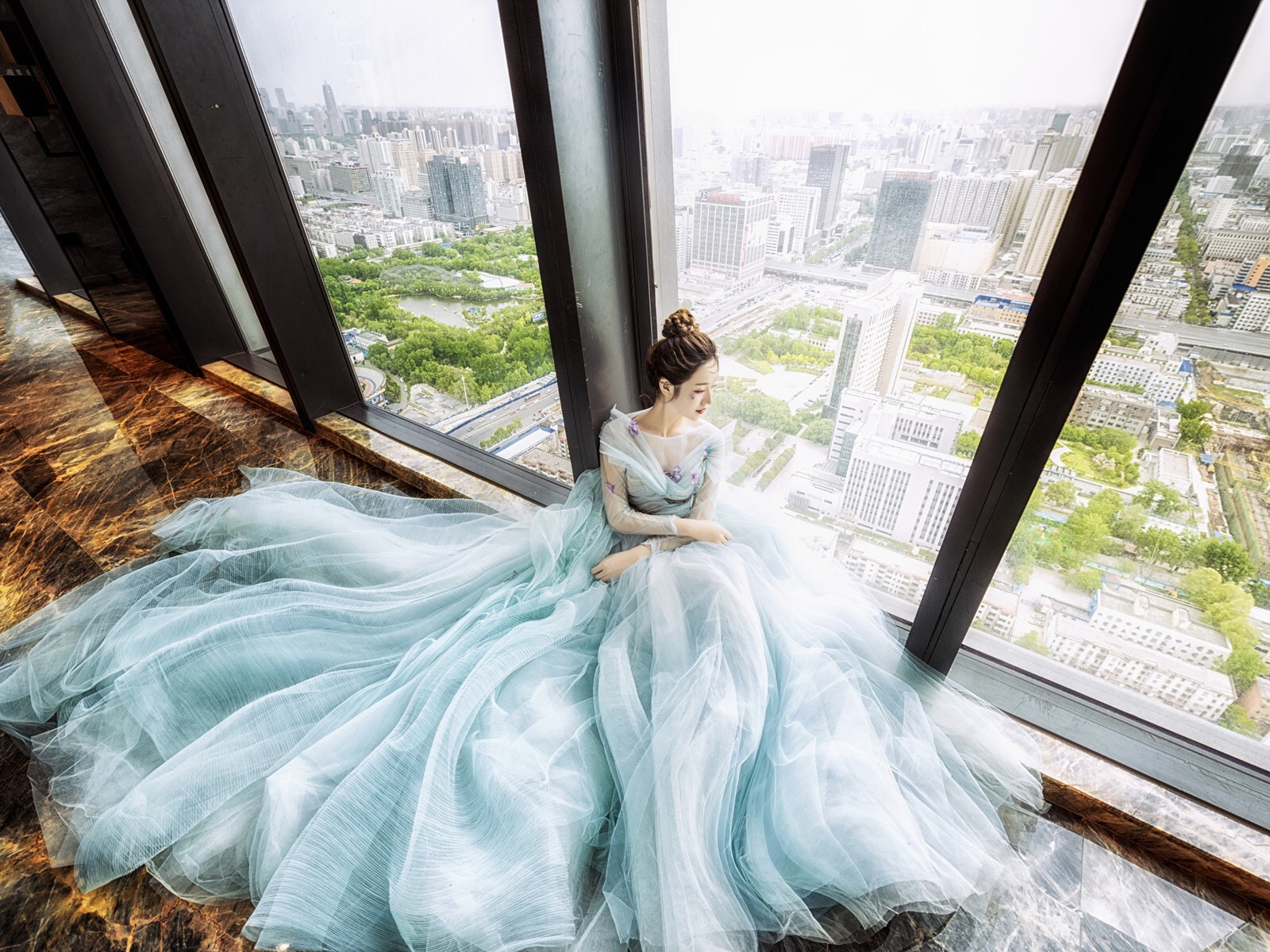 蓝色梦幻婚纱礼服七件套