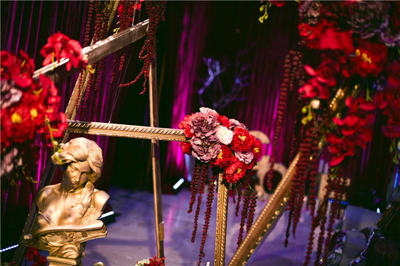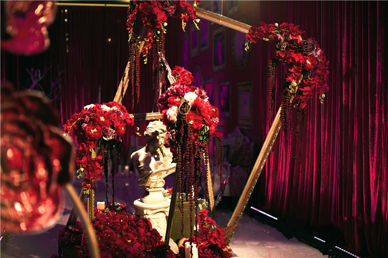 3.交接区:开放式方形交接台+四周花艺造型+灯光点缀