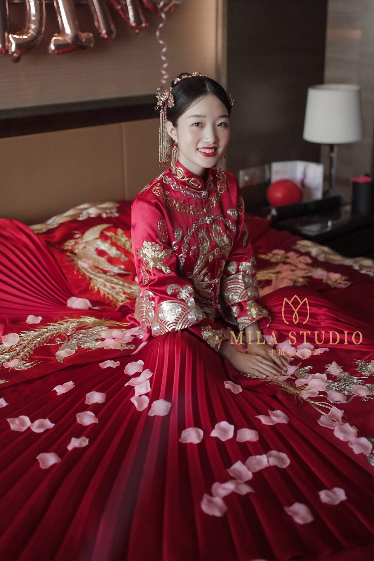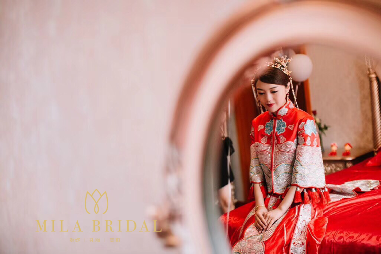【MILA BRIDAL米拉婚纱礼服】 3680套系衣服+3680总监化妆师南京市跟一天 化妆全天跟妆,妈妈妆,伴娘妆, 设计师高订系列主纱 一件 精品系列秀禾龙凤褂 一件 精美二次登台礼服 一件 精美红色敬酒服 一件 精美头纱 一条 裙撑 一个 精美头饰全配