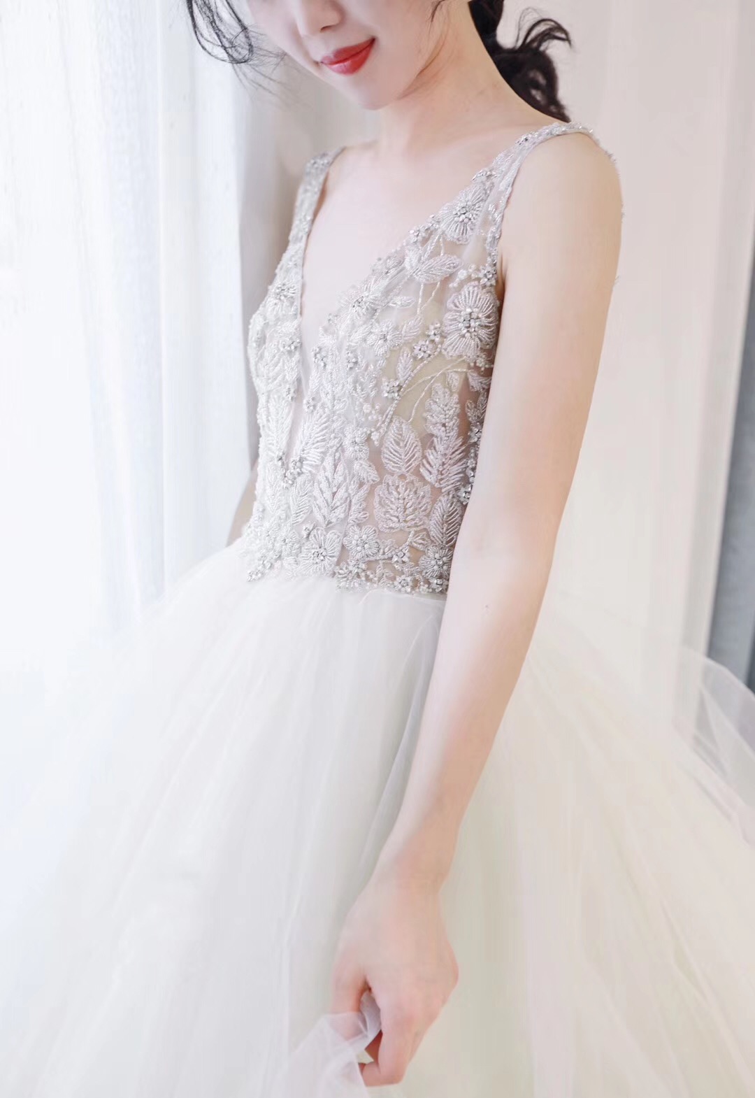 试纱说明: 1.专业礼服顾问,一对一为您服务; 2.私密试衣间,超大落地镜; 3.店内提供婚纱礼服,新娘跟妆,婚鞋定制,婚礼跟拍等一站式体验选择;