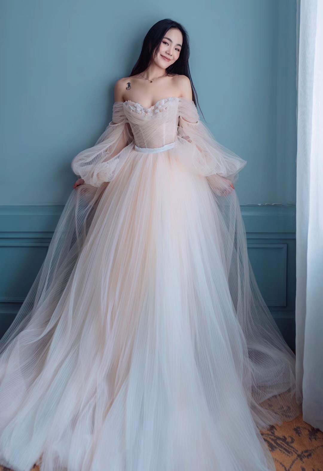 奢华公主宫廷风大长拖尾蓬蓬感恩主纱