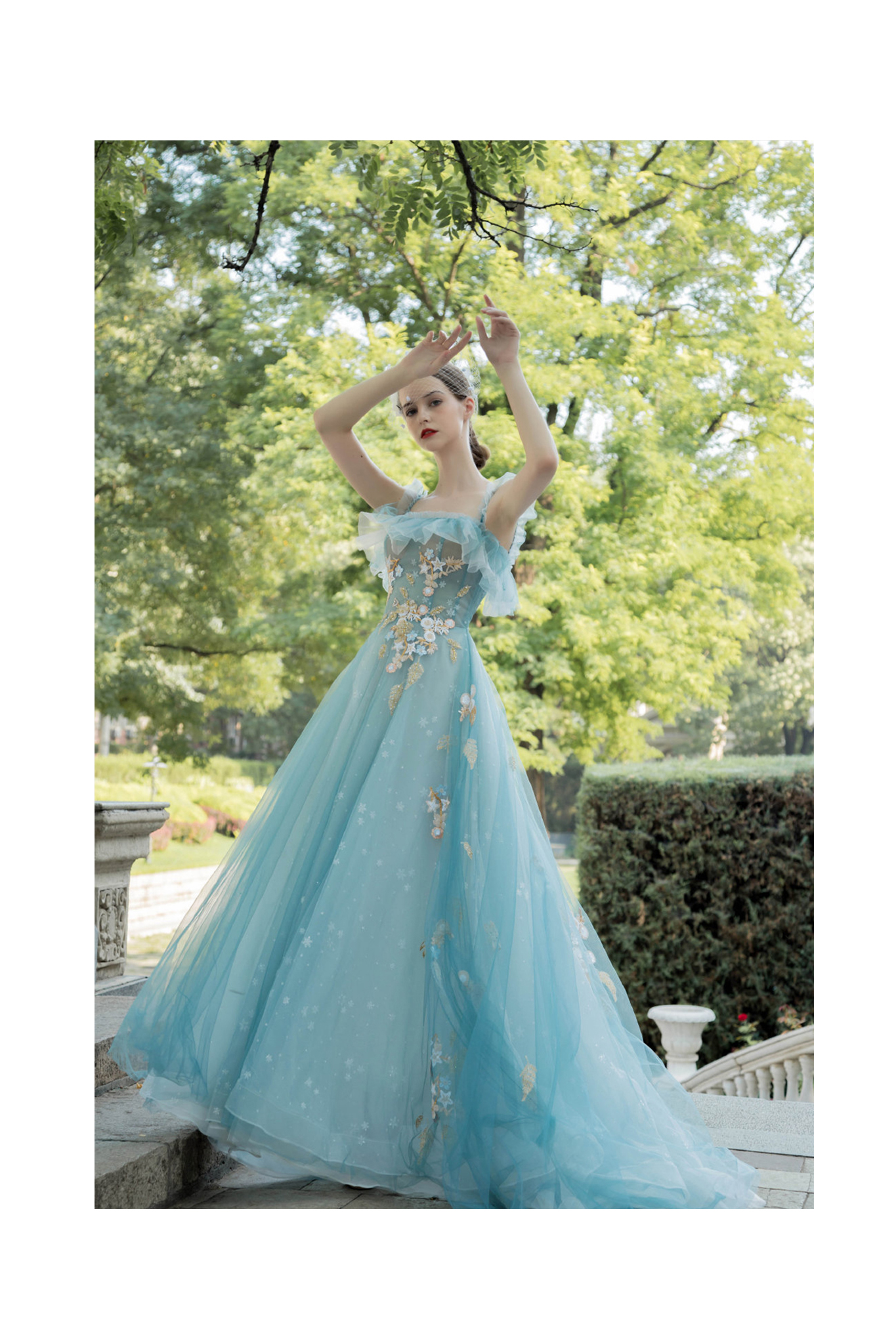 蓝色梦幻婚纱礼服七件套