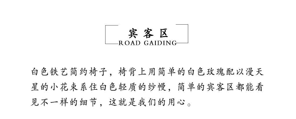 3*5.4m定制喷绘背景板1块 造型花艺4套 定制白色树叶铁艺1套 造型底花1套 配套花环1个 蓝色飘带造型1套 迎宾桌1张 白色桌布1张