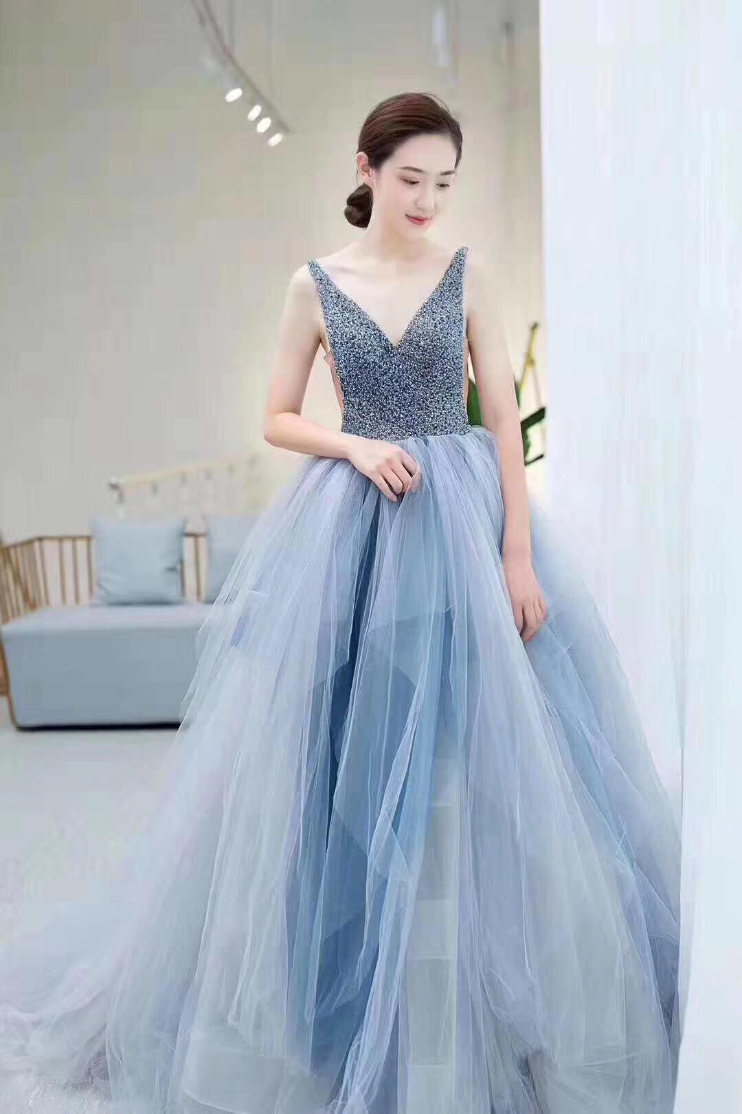 蓝色梦幻婚纱礼服七件套