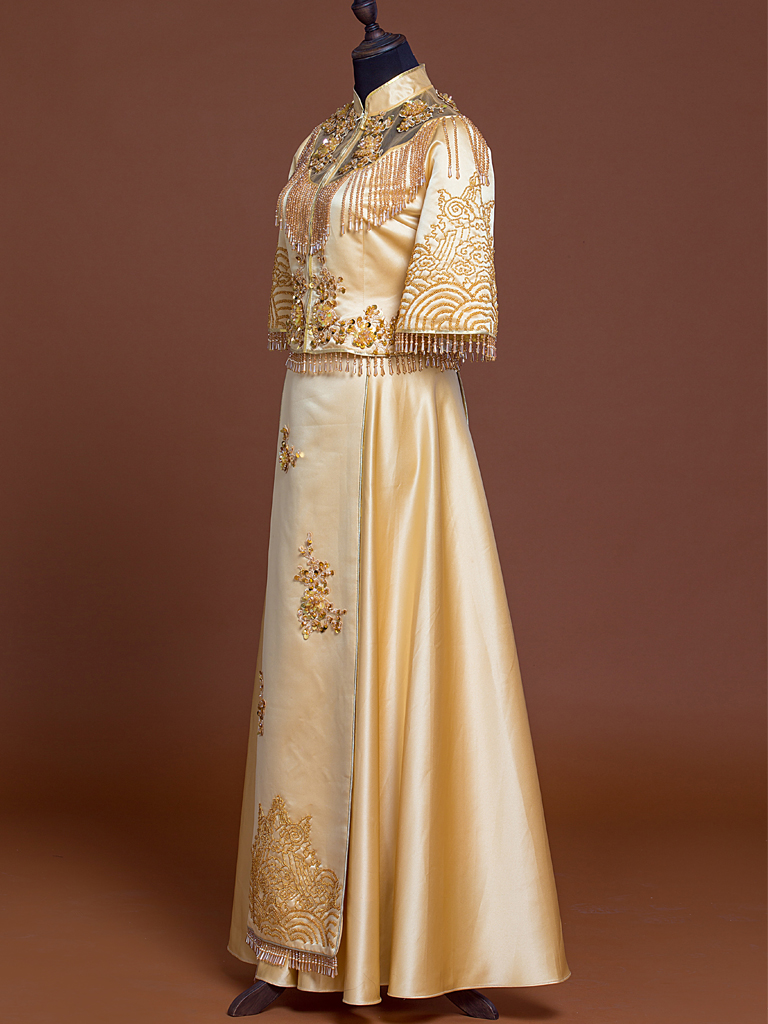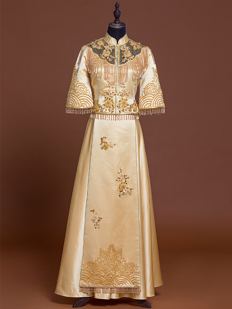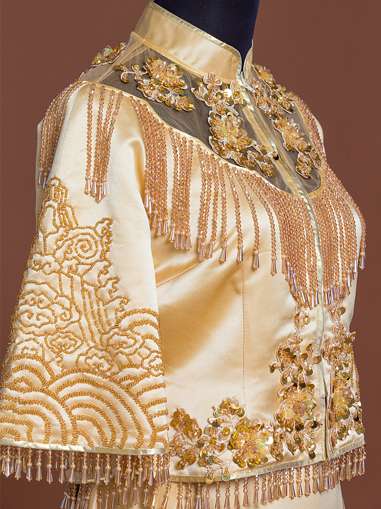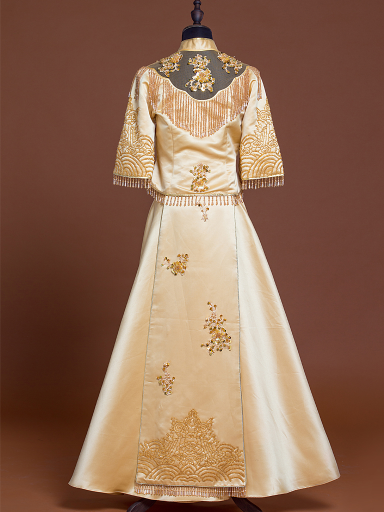 新款手工珠绣新中式双飘礼服