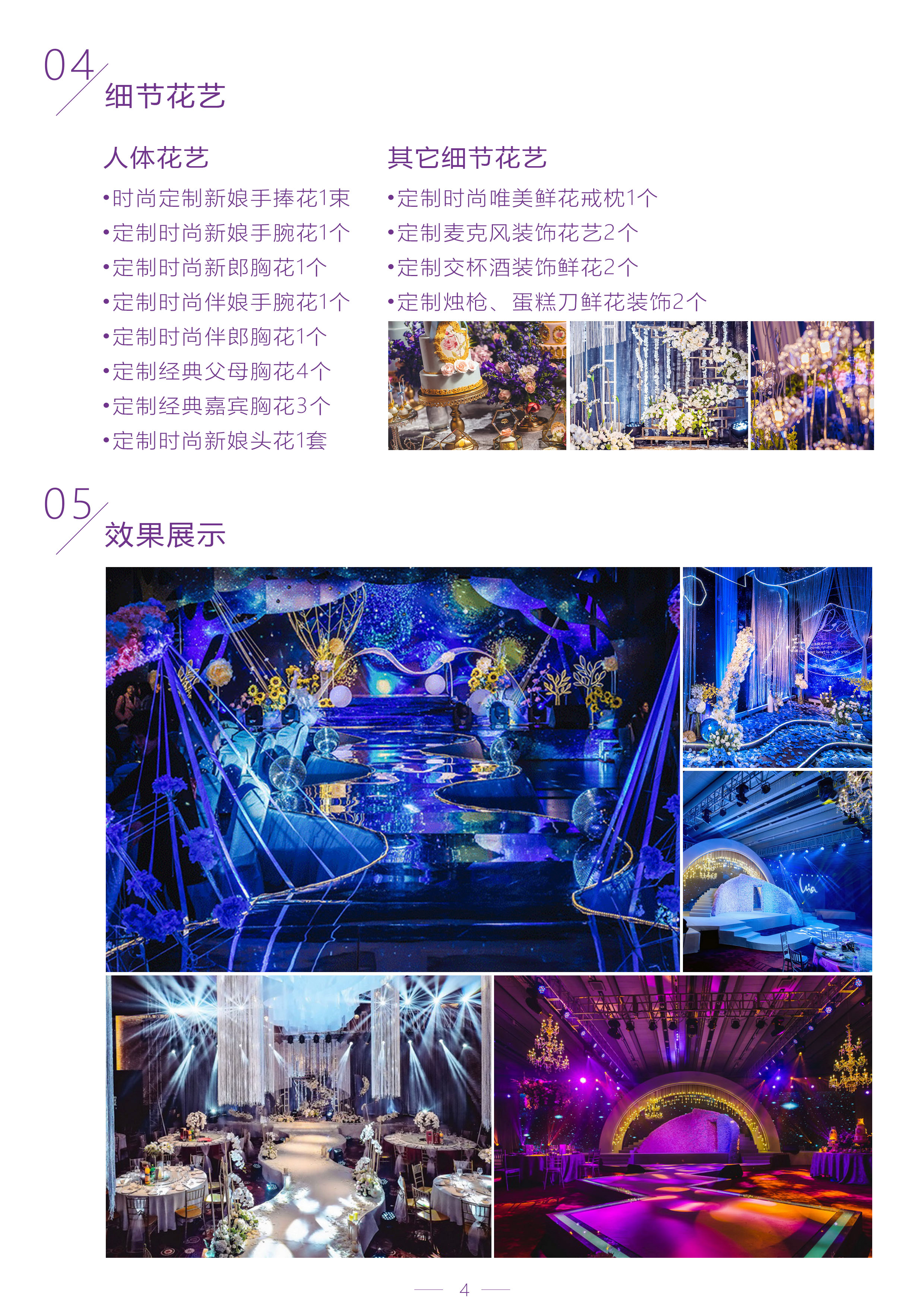 婚礼顾问一对一全程指导服务,选择属于自己的爱情色系。经典人体花艺设计,资深婚礼服务团队。