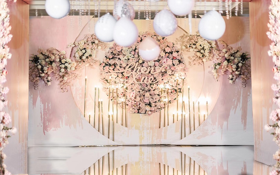 香槟粉奢华羽毛主题婚礼含老板亲自司仪化妆摄像摄影