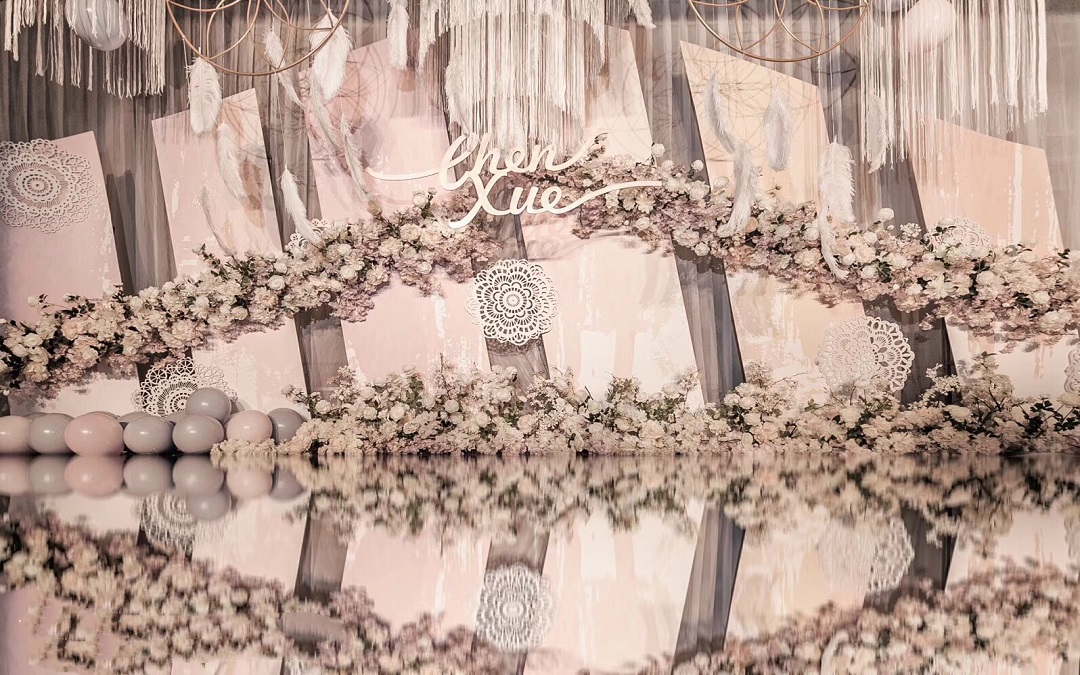 香槟粉奢华羽毛风格主题婚礼