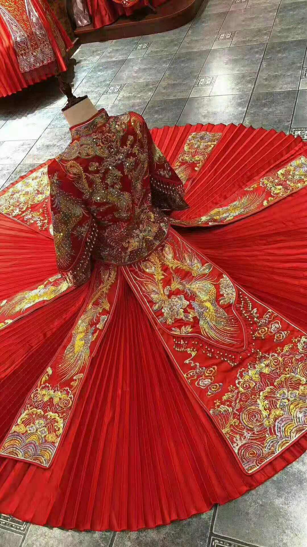 全新拖尾婚纱+全新秀禾(齐地婚纱)+全新敬酒服