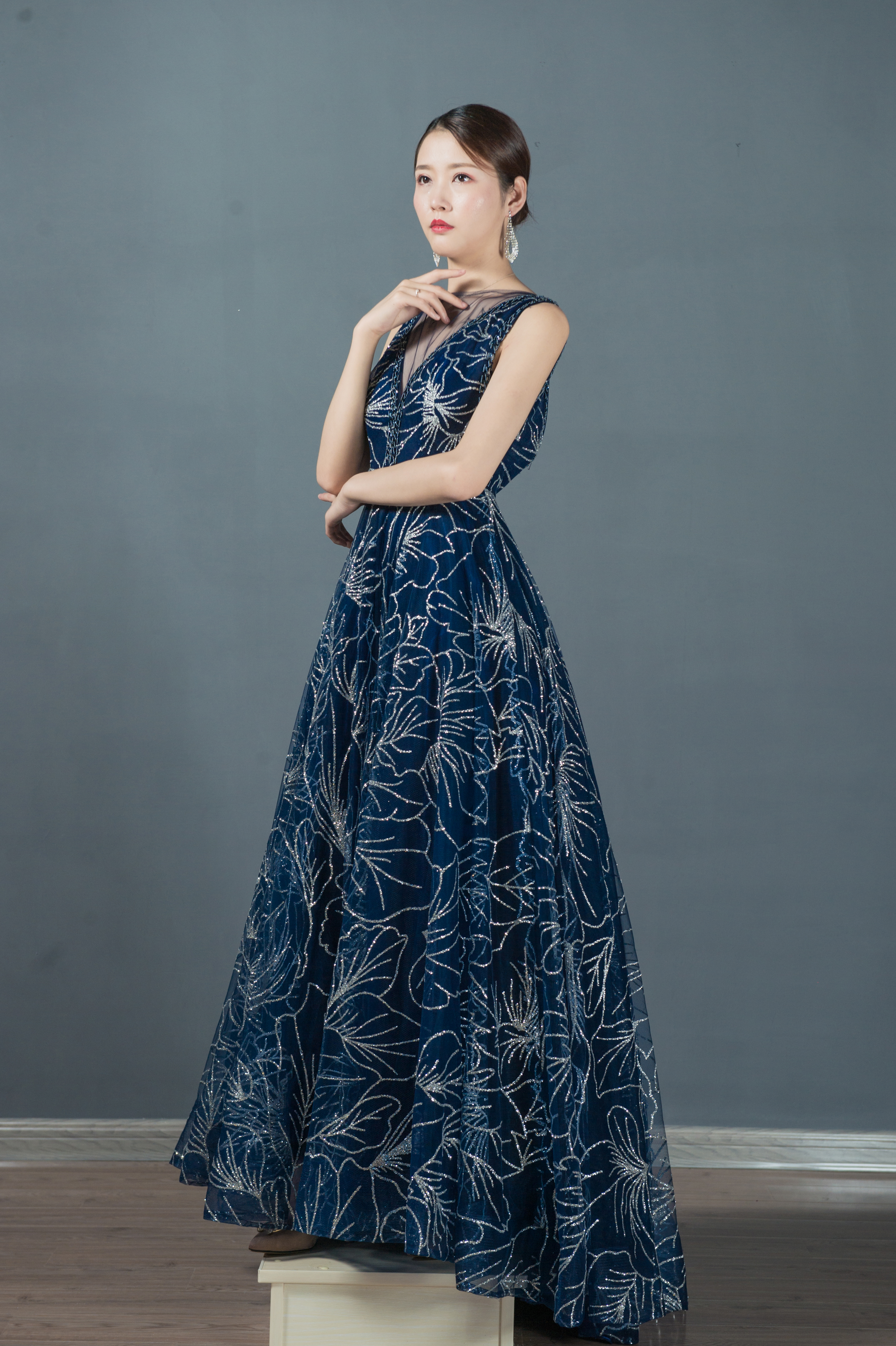 蓝色梦幻婚纱礼服七件套
