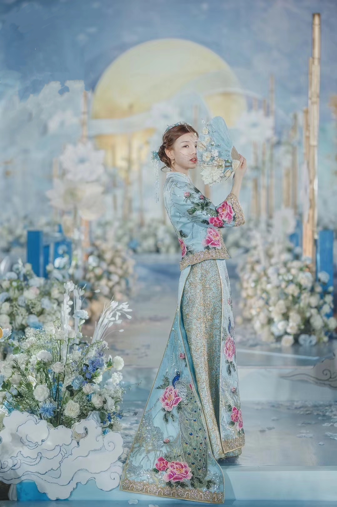 蓝色梦幻婚纱礼服七件套
