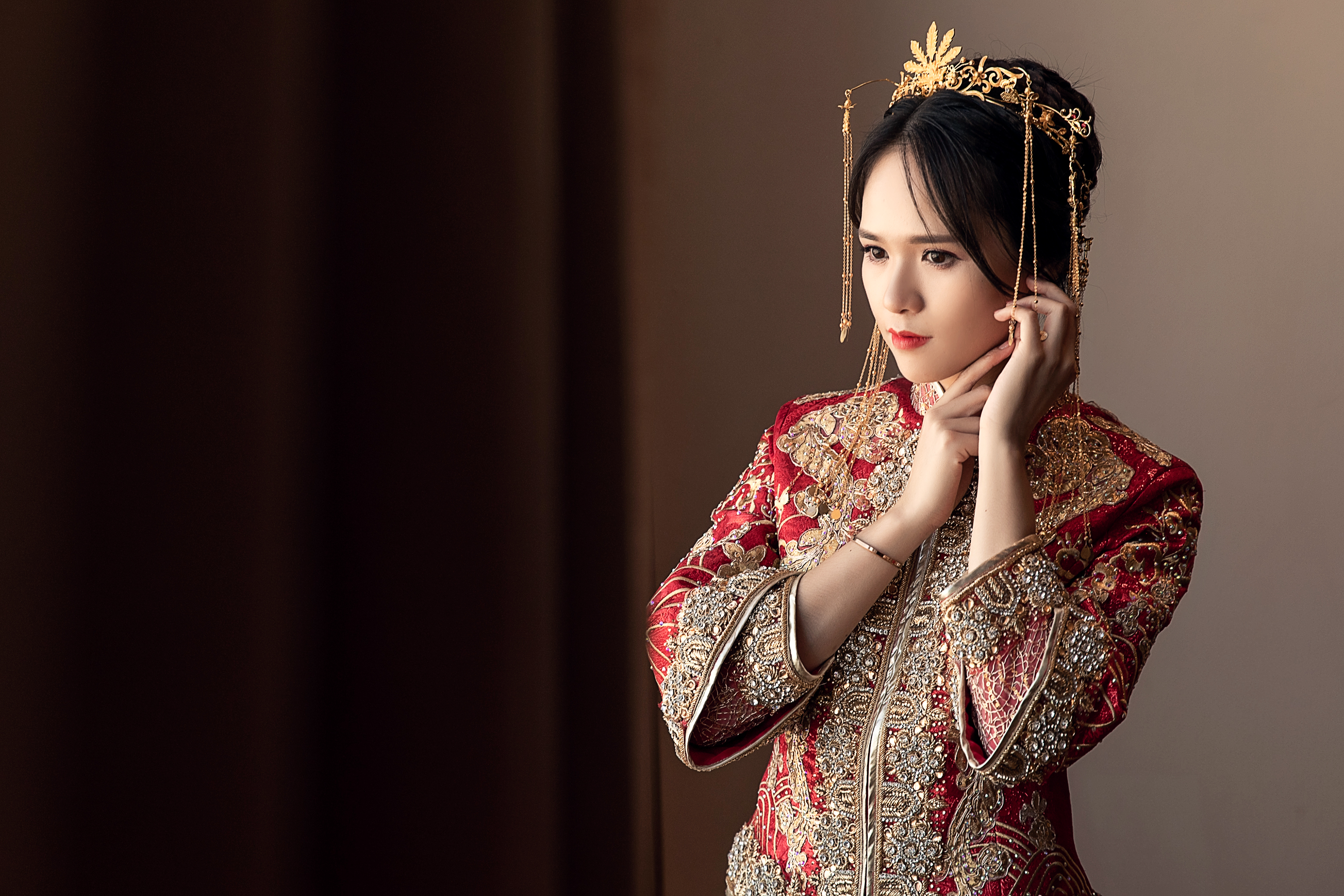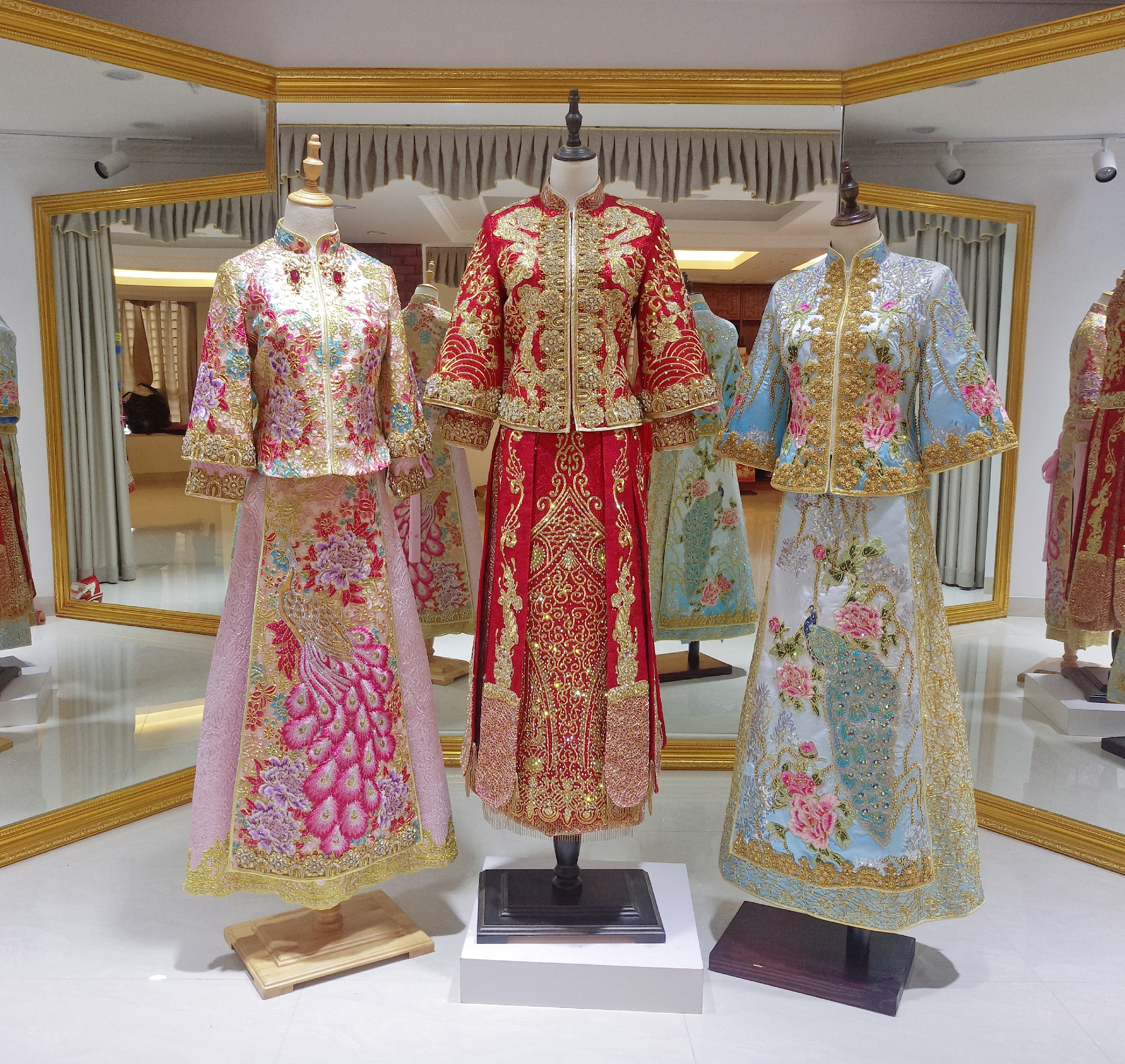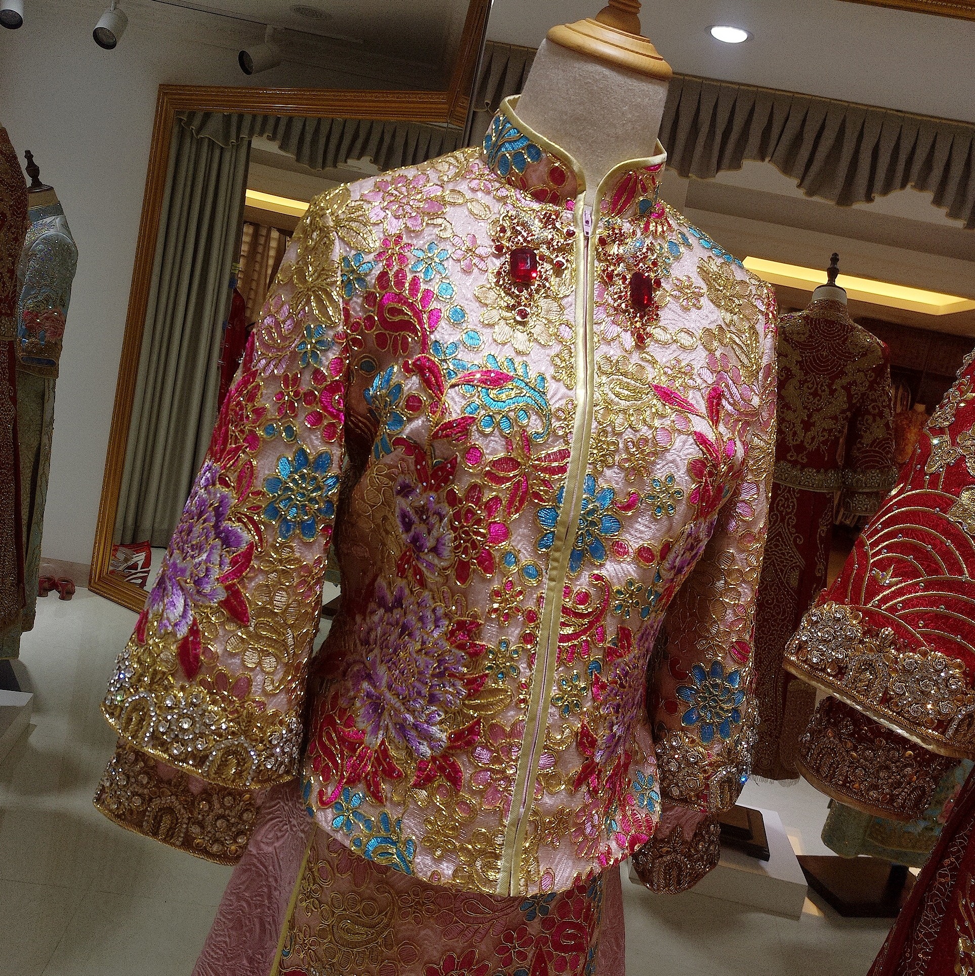 店内所有马来褂全都是进口印度丝工艺,精致奢华的中式礼服