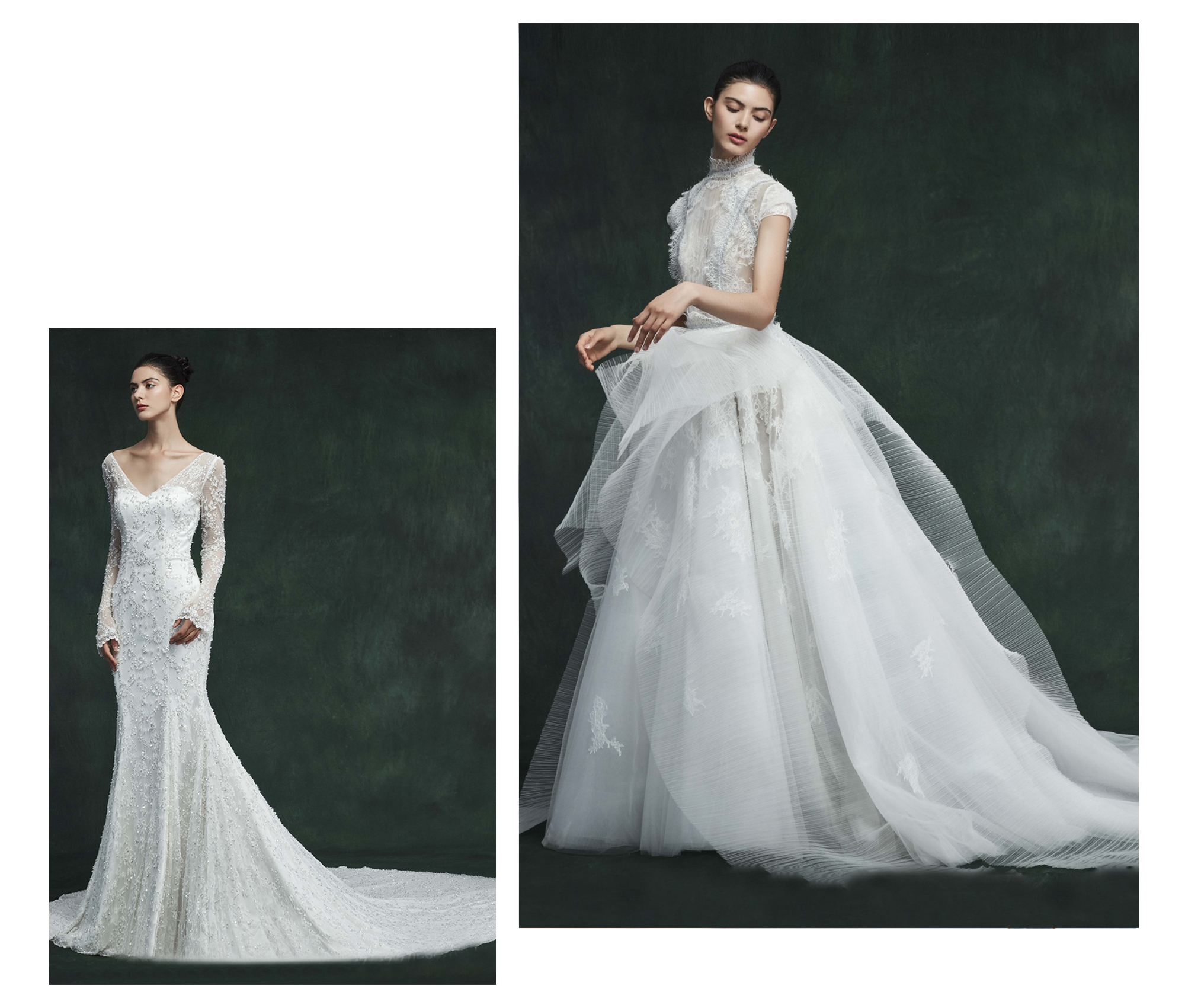 高端定制齐地纱一件; 高端定制奢华拖尾或浪漫鱼尾一件; 韩国首尔经典礼服; 赠送: 精致轻奢伴娘服四件; 专属1对1全程服务。