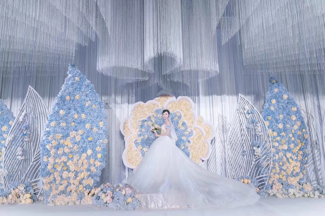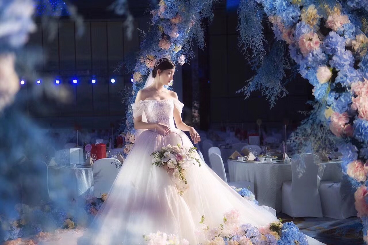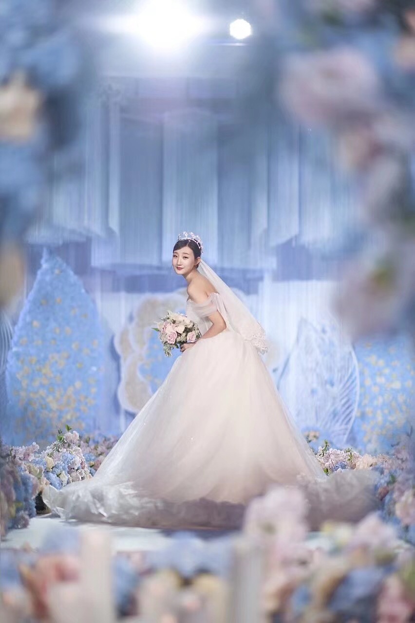 蓝色梦幻婚纱礼服七件套